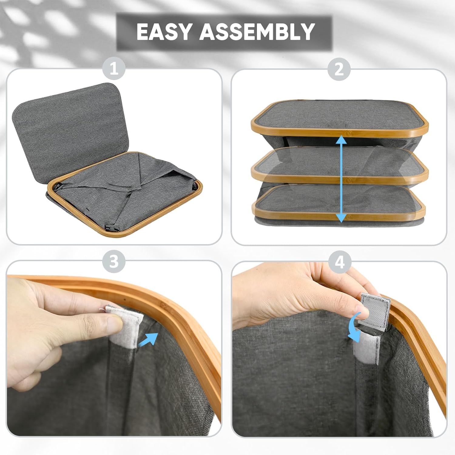- [DURABLE AND ECO-FRIENDLY] We care about the environment, which is why our laundry hamper is made from sustainable bamboo rim. Bamboo is known for its exceptional strength and durability, ensuring this clothes hamper's handle will withstand the test of time. By choosing our eco-friendly laundry basket organizer, you're making a conscious decision to reduce your carbon footprint.