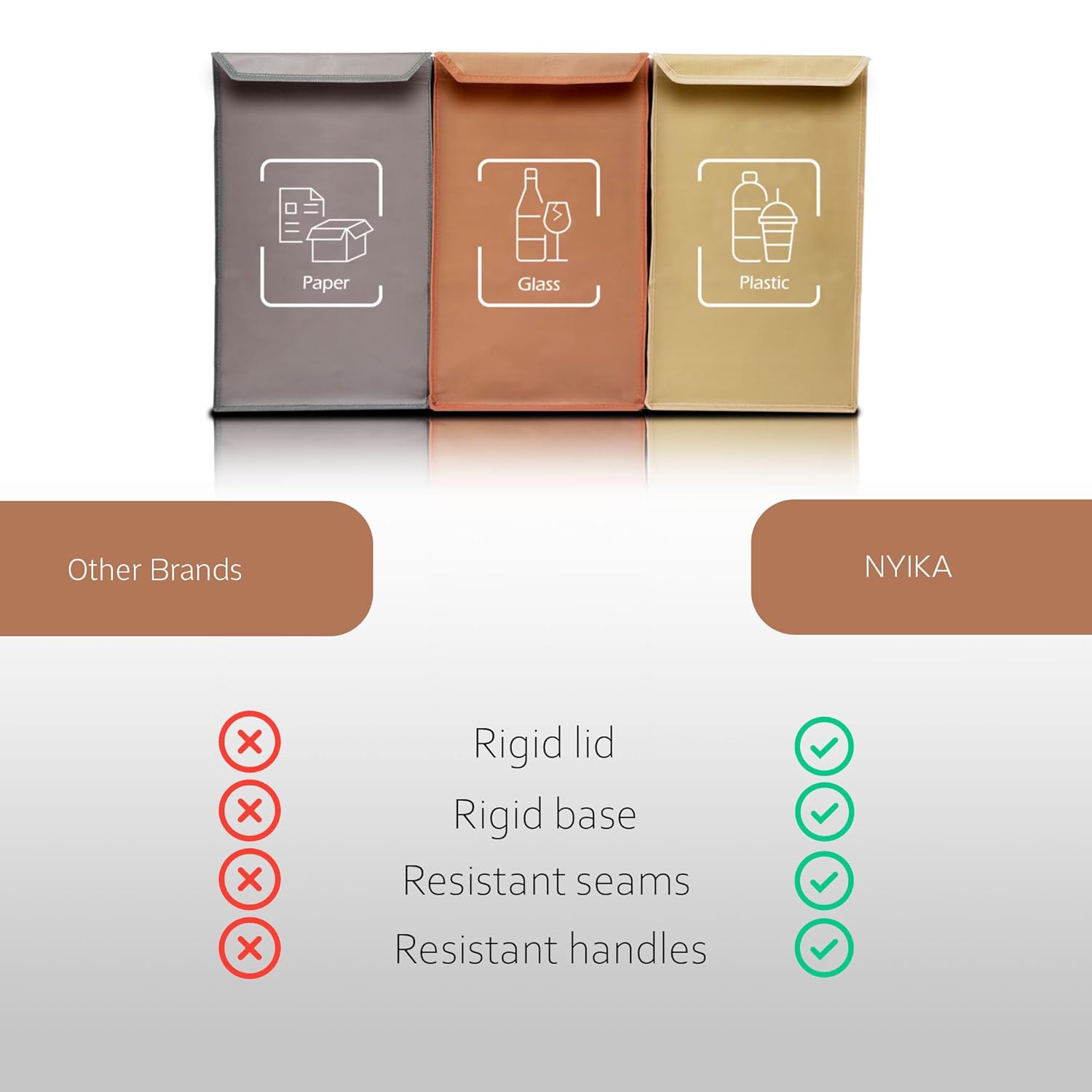 NYIKA - Recycling Organizer - Reusable Recycling Bags - Recycling Sorter - Trash Sorting Bins - 3 Compartment Recycle - Pack of 3 Bags with Lid