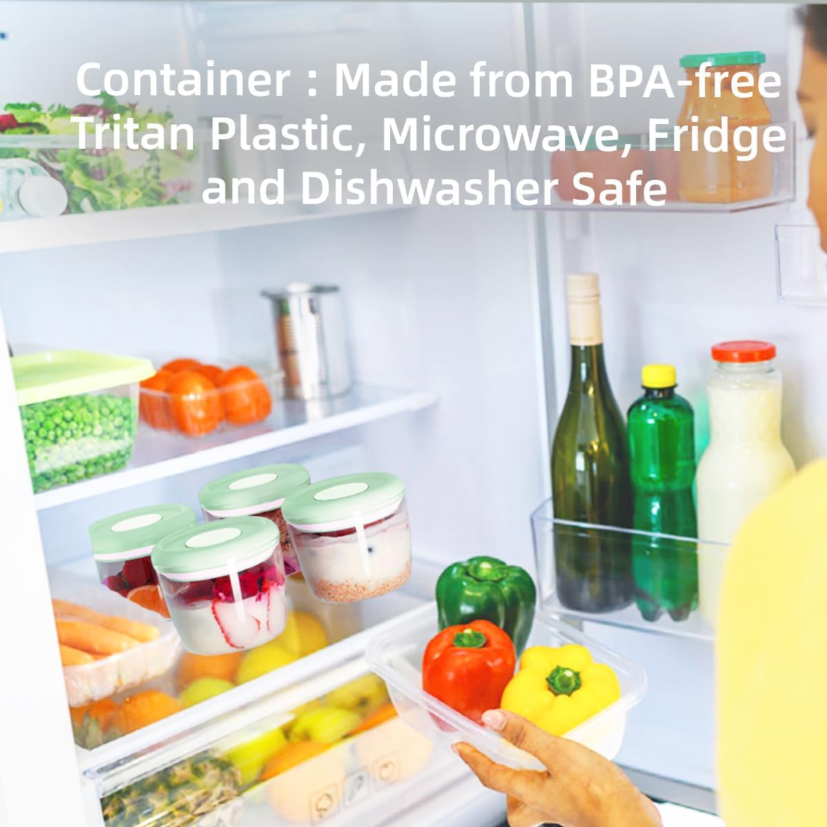 Overnight Oats Containers with Lids,14oz 400ml Set of 4 Meal Prep Container, Airtight Leakproof Reusable Food Storage Containers,Pop-Top Lids Bowl for Leftovers,Glass-like Clarity Tritan Material