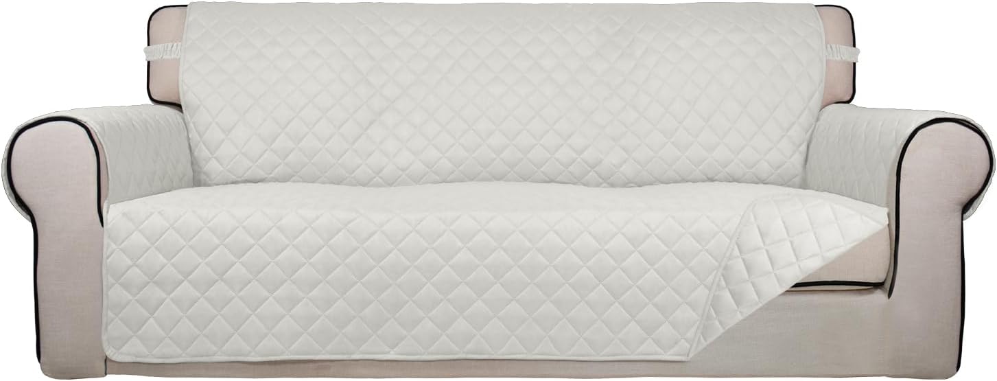 PureFit Reversible Quilted Sofa Cover, Water Resistant Slipcover Furniture Protector, Washable Couch Cover with Non Slip and Elastic Straps for Kids, Pets (Oversized Sofa, Ivory/Ivory)