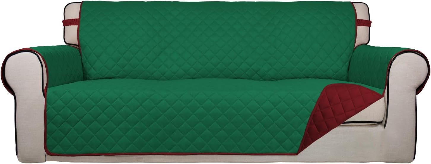 PureFit Reversible Quilted Sofa Cover, Water Resistant Slipcover Furniture Protector, Washable Couch Cover with Non Slip and Elastic Straps for Kids, Dogs, Pets (Sofa, Green/Red)