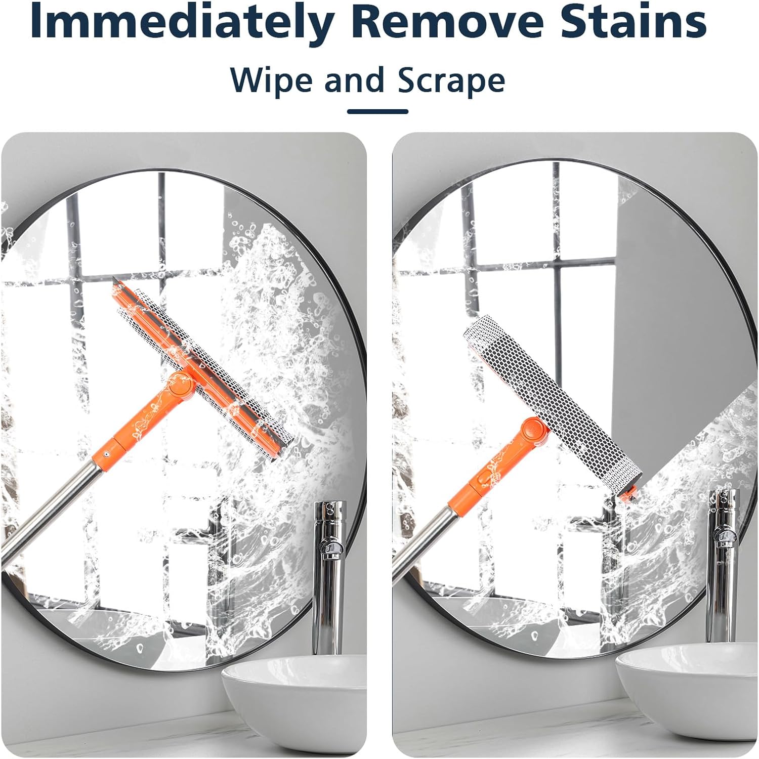 - 【Cost Performance Selectionl】:The 2 in 1 window squeegee is 10 inches and the length of the pole can reach up to 55 inches (4 section of handles), you can clean high windows.Package include 1 super absorbent sponge scrubber with mesh and natural rubber squeegee,four section of extension handles.