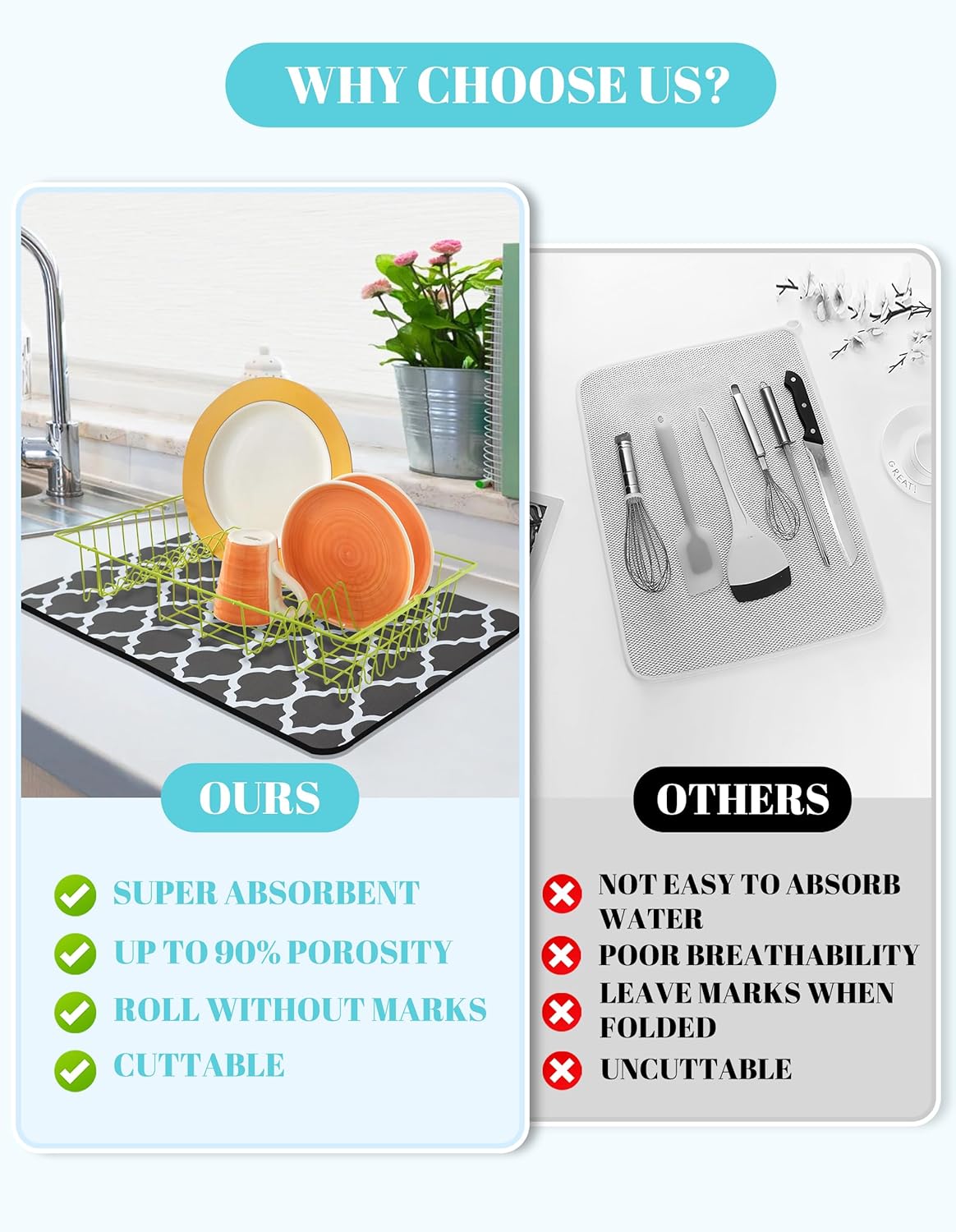 - DISH DRYING MAT: The drying mat is soft and absorbent, Always keep countertops clean and tidy. A practical kitchen mat accessory is definitely worth choosing.