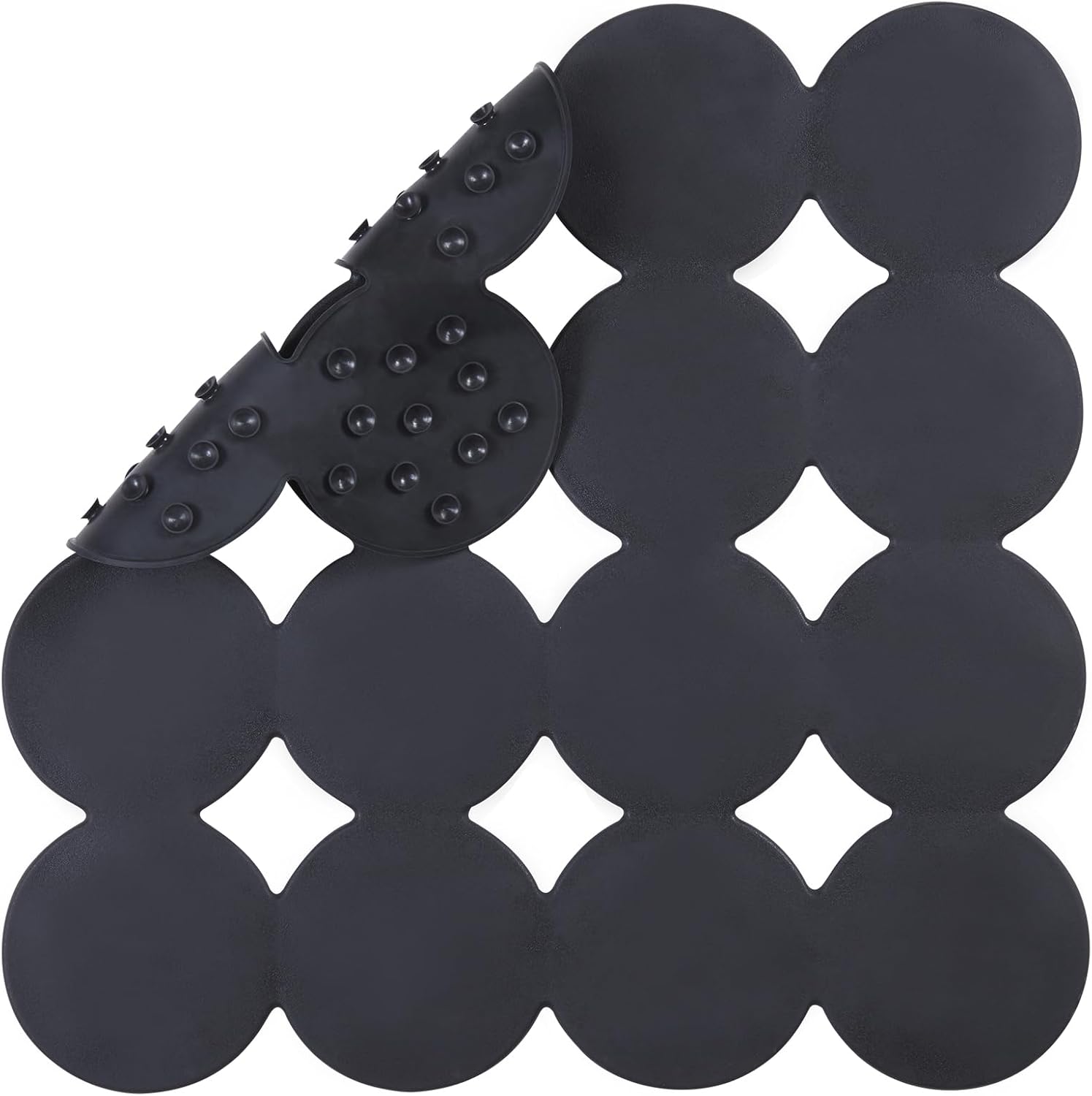 Square Shower Mat Nonslip - Rubber Bathtub Mat with Suction Cups for Inside Shower Bathroom Floor (Black, 21X21)