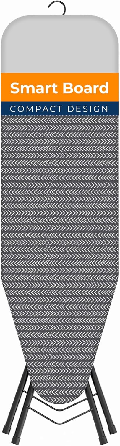 Happhom Ironing Board, Compact and Space Saver Iron Board, Safety Ironing with Park Zone and 4 Layers Extra Thick Cover, Patented Lock System for Foldable Leg, Easy Storage with Smart Hanger (13x43)