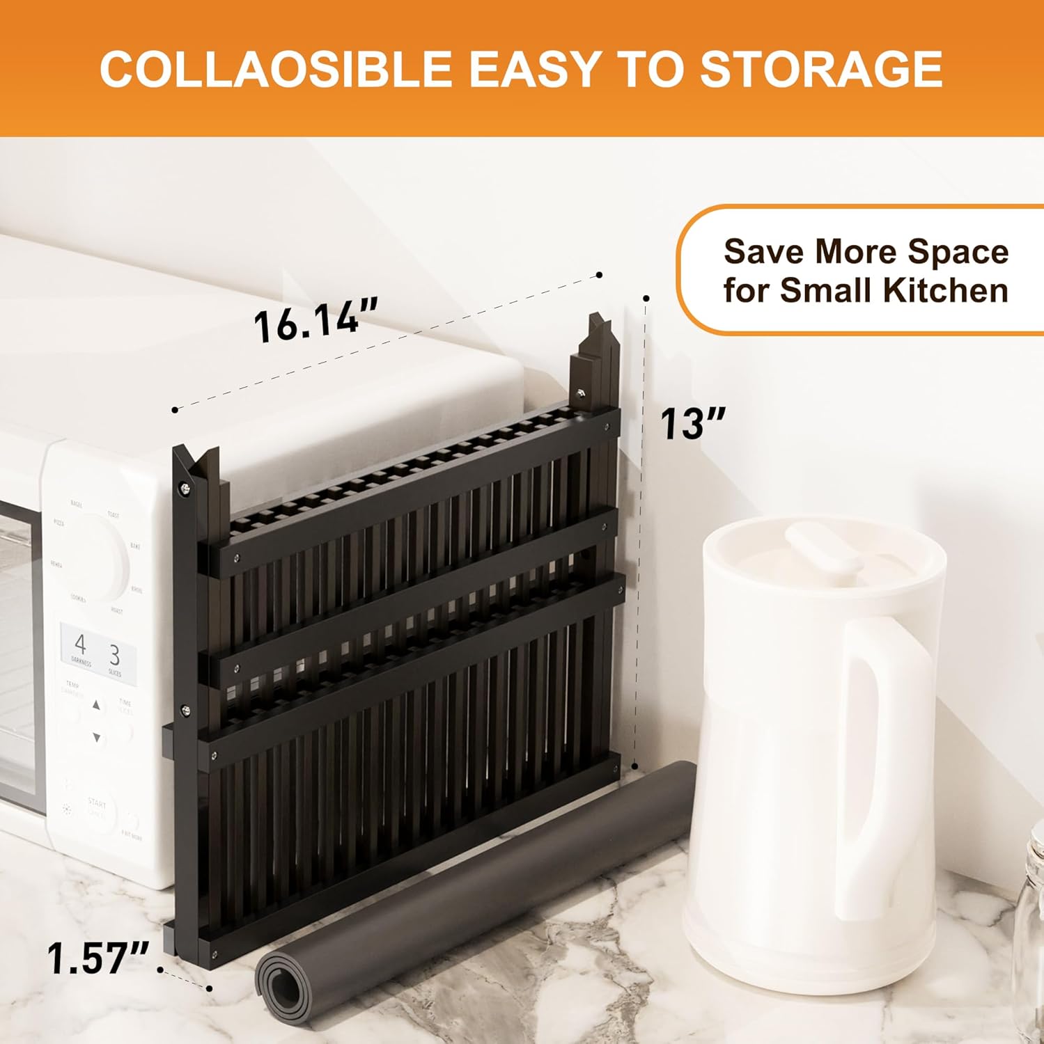 - Large Capacity: This beautifully bamboo dish drying rack for kitchen counter accommodates your complete dishes set - including dinner plates, cups, forks, and spoons. Keep your counter tidy and not cluttered. A foldable dish drying rack allows you to efficiently dry your dishes, mugs, pots and pans. dish racks for kitchen counter designed for maximum capacity and ultra-convenience. 2 tiers and 18 slots are perfect for 18 full-size square or round plates, cups, and even a cutting board