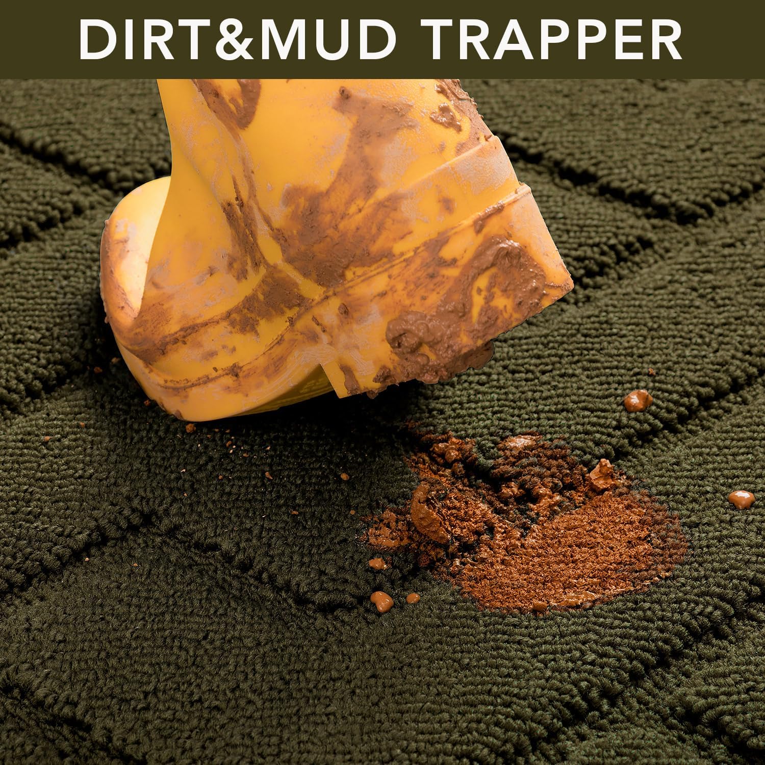 hicorfe Front Door Mat Outside Entrance,32"x40" Absorbent Muddy Dirt Resist Welcome Door Mats Outdoor Indoor,Stain and Fade Resistant,Non Slip Backing Entry Mat Doormat for Entryway(Oliver Green)