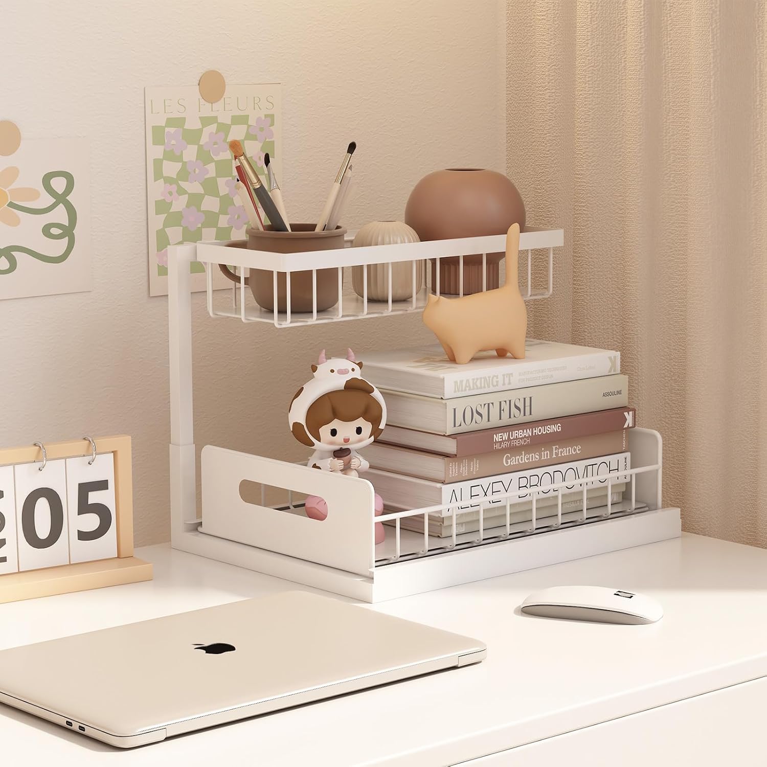 - [Space Saving] Organize the space under your cabinets with this 2-tier under sink storage. This under the sink organizer can solve your under cabinet storage troubles and increase the utilization of limited sink space. With pull out cabinet organizer, you have room for all your stuff, and a slide-out system like this makes it easier to access everything you store under the sink