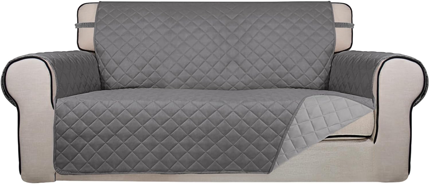 PureFit Reversible Quilted Sofa Cover, Water Resistant Slipcover Furniture Protector, Washable Couch Cover with Non Slip and Elastic Straps for Kids, Dogs, Pets (Oversized Loveseat, Gray/Light Gray)