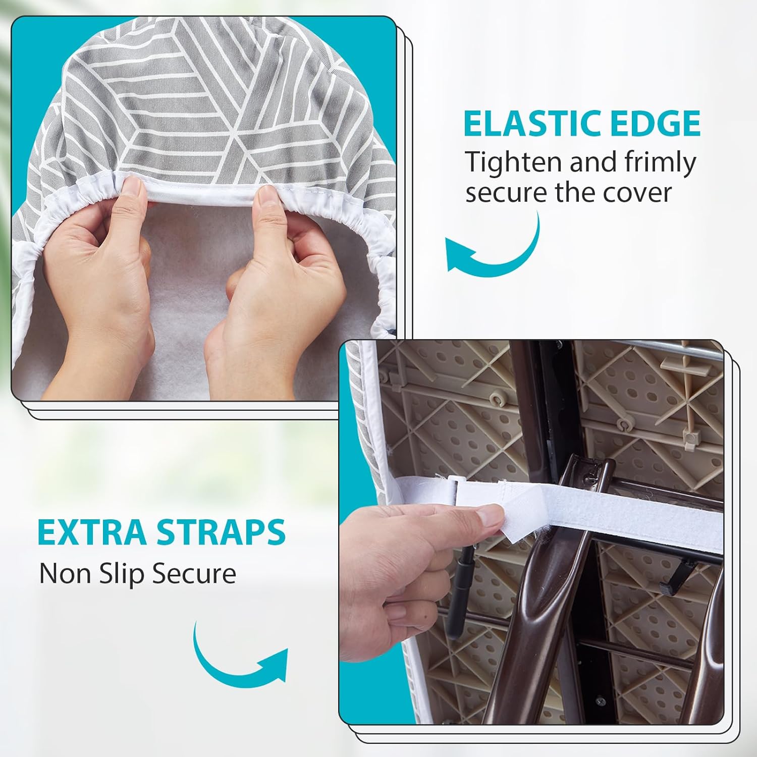 - SECURE ON YOUR IRONING BOARD TIGHTLY: The unique double non slip nose bag simplifies installation and secures it firmly in place. The elastic edge can tighten and straighten the ironing board cover to ensure that it is not easy to move or slide