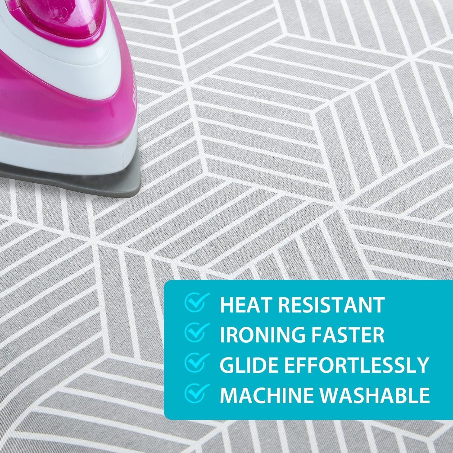 Wide Ironing Board Cover with Padding 18 x 49 inch Heat Reflective with Hook and Loop Fasteners, Thick Padding with Elasticized Edges, 3 Layers Iron Board Cover (Gray Cube)