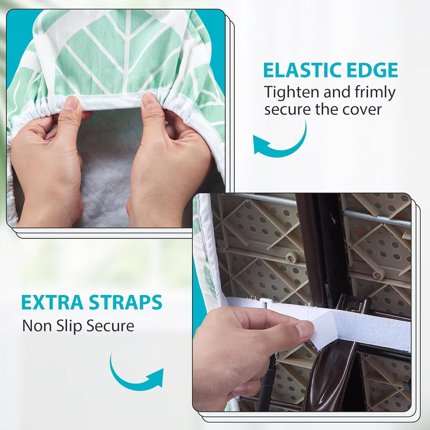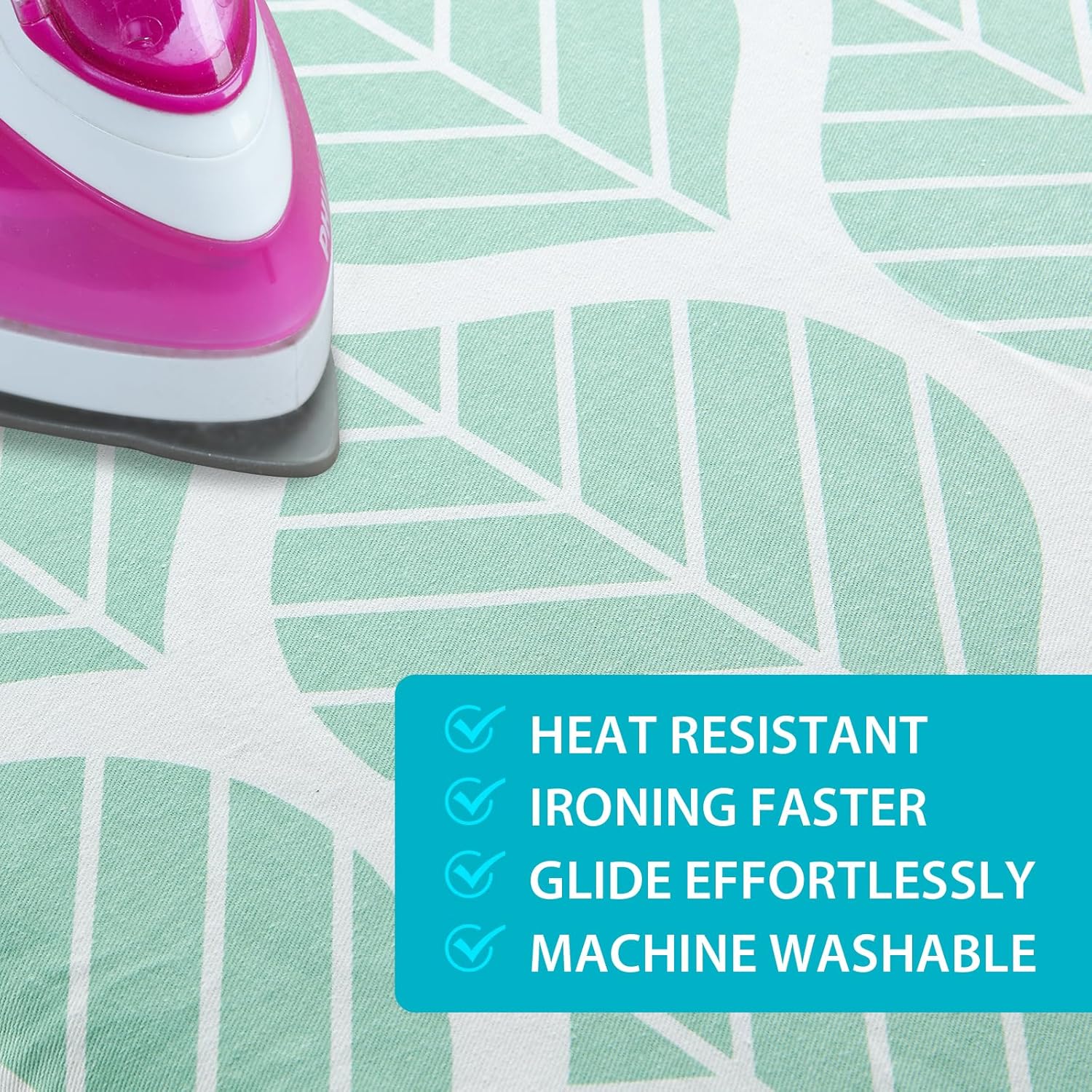 Wide Ironing Board Cover and Pad 18 x 49 inch Heat Reflective with Hook and Loop Fasteners, Thick Padding with Elasticized Edges, 3 Layers Iron Board Cover (Green Leaf)