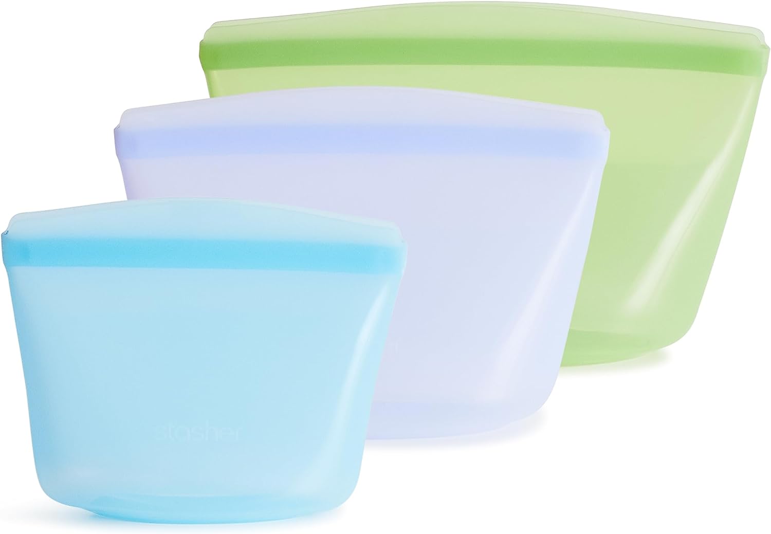 Stasher Premium Silicone Reusable Food Storage Bags, 3-Pack, Multi, Multi-Use Food Storage Bags, Lunch Bag, Travel Containers, BPA Free, Leak-free, Dishwasher-Safe, Eco-friendly
