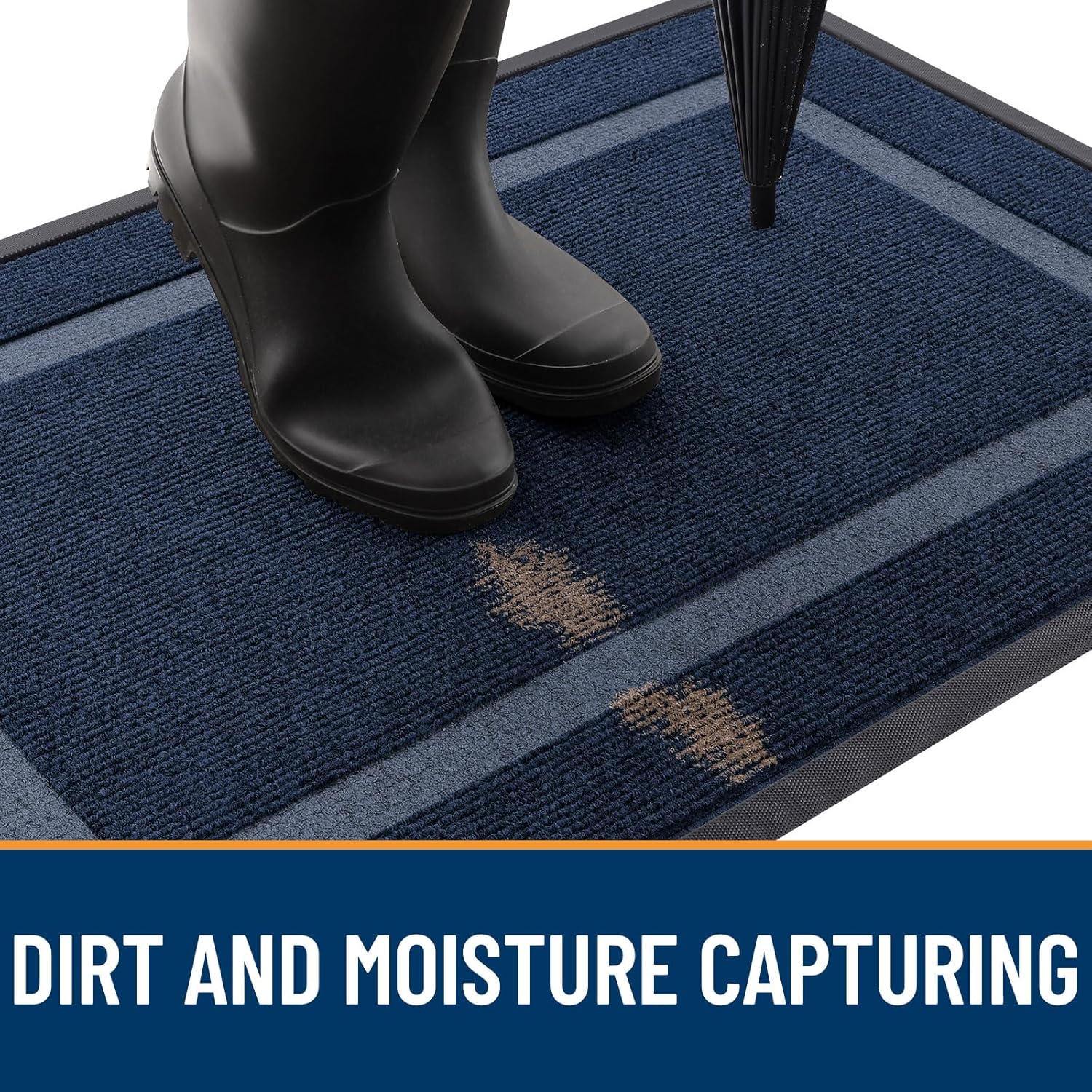 OLANLY Front Door Mat Indoor Outdoor Entrance, Waterproof All-Season, All-Weather Doormat, Sturdy Natural Rubber, Fade Resistant, Low Profile, Easy Clean Patio Porch Entryway Mat, 29.5x17, Blue