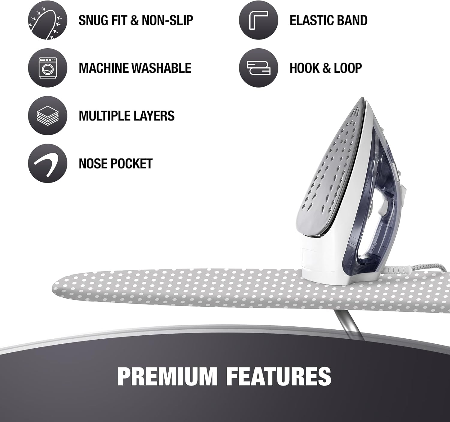 - TIME & ENERGY SAVER : The heat reflective coating of the ironing board cover allows you to iron faster and easier. Thus, you can easily do your ironing work by spending less energy and time. Also this heat-reflective coating technology durable against frequent use.