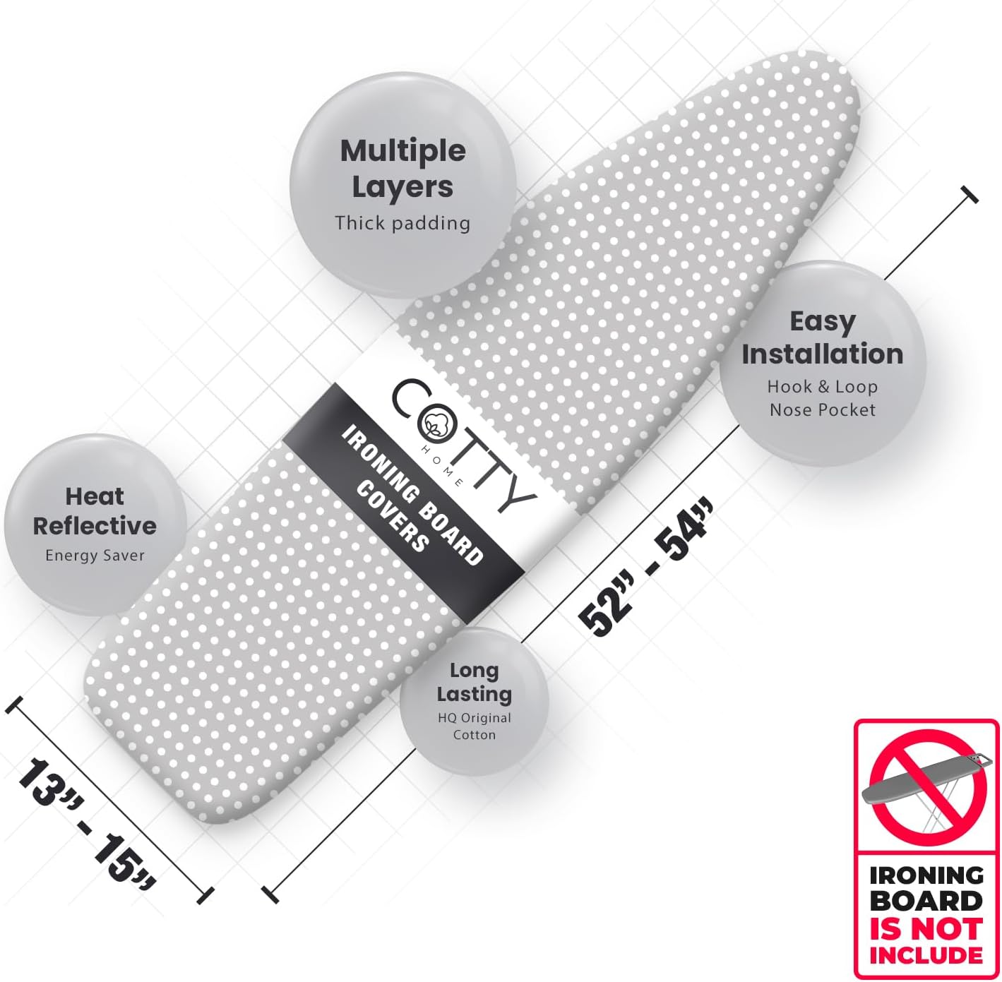 - EASY & QUICK IRONING : Accelerate and make simple your ironing process with our innovative ironing board cover. Heat reflective coated that reflects heat rather than absorbing it, this ironing board cover ensures faster and more effective ironing. Also the cover remains securely in place during use, thus you can finish your work more effortlessly.