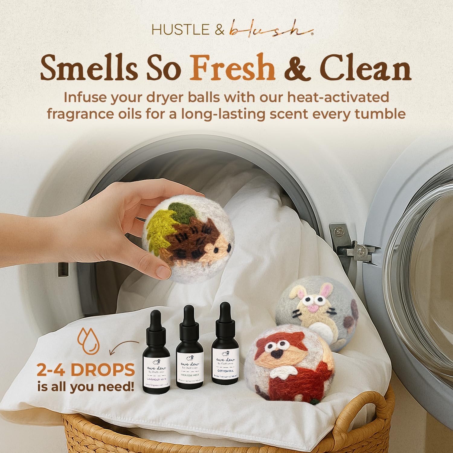- ADORABLE DESIGNS - A THOUGHTFUL GIFT FOR ANY OCCASION: Add a touch of whimsy to your laundry routine with our delightful set of wool dryer balls. This set includes a Blue Owl, Cream Bunny Rabbit, Brown Hedgehog, Brown Bear, Brown Squirrel, and Brown Beaver. Beautifully packaged in a reusable linen bag, our wool dryer balls are great for gifting. Whether itโs for a baby shower, housewarming, or just because, our cute wool dryer balls are a gift everyone will love!