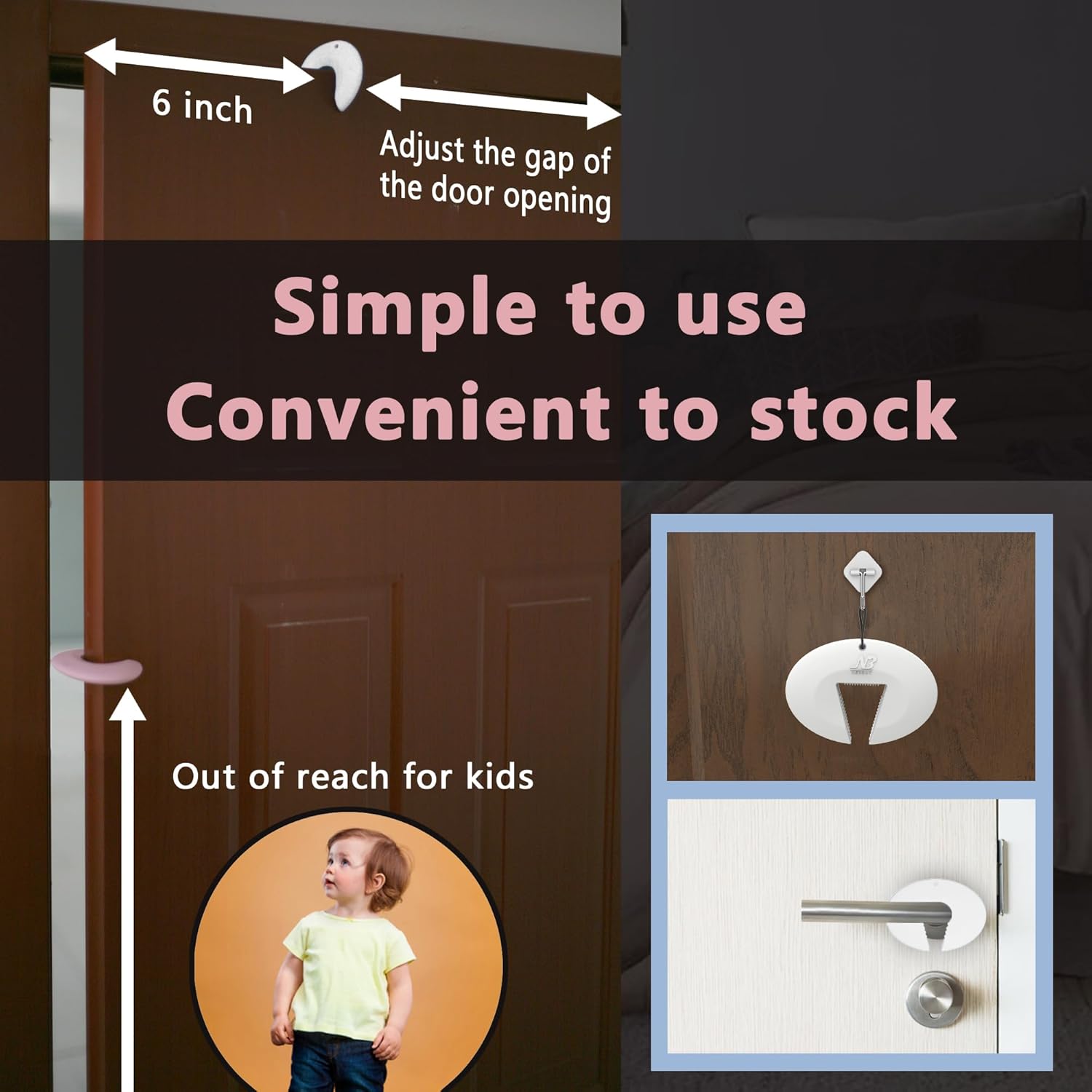 - Intelligent Design Toddler Door Stopper: Flexible C Shape makes it easy to attach and fits around any size door. The door slam stopper Innovative 'teeth' make the pinch guard and door combination more stable, therefore it will not fall off even with a strong slam.