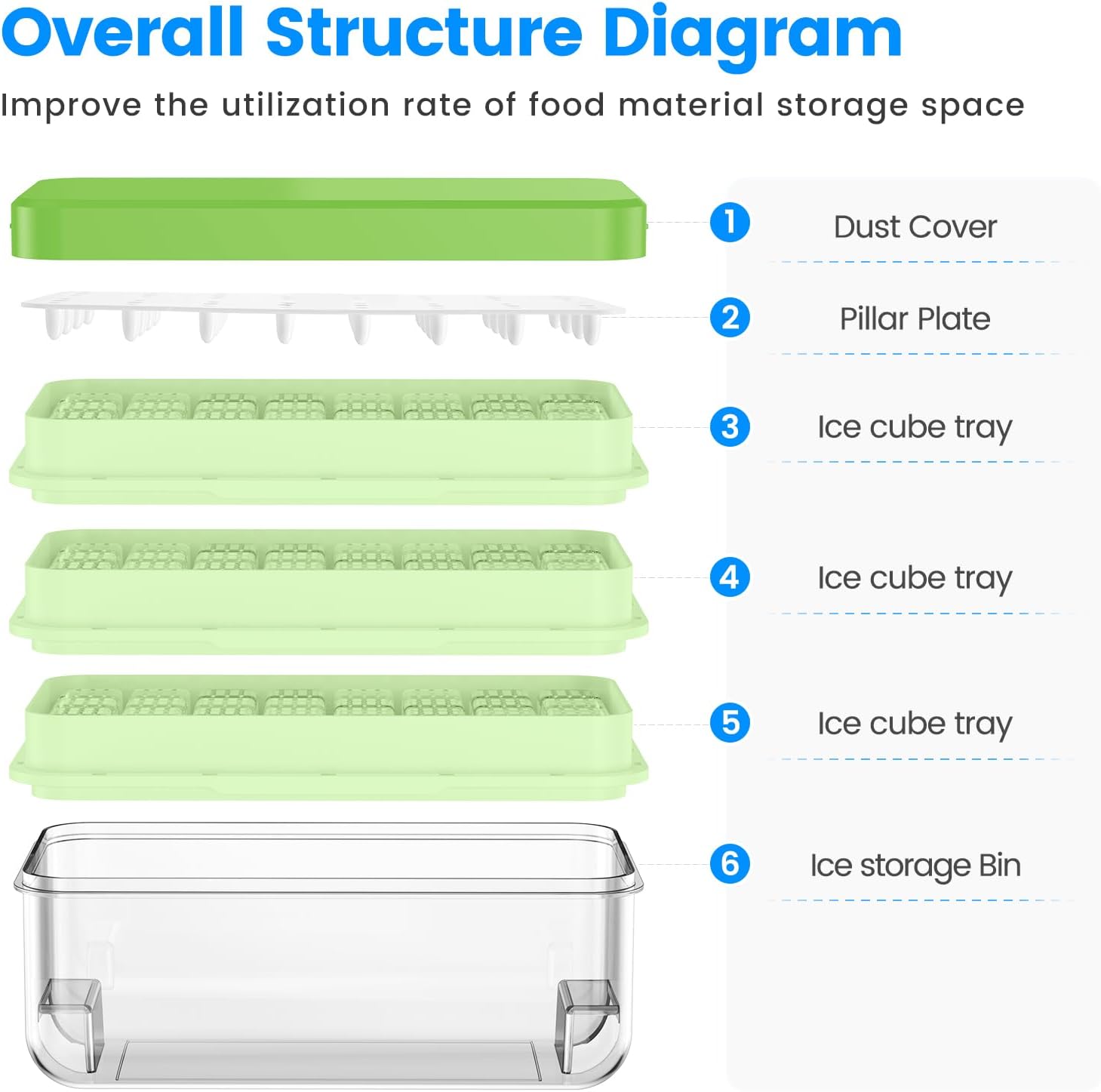 - Food Grade Material & BPA Free:This ice trays for freezer with lid and bin are made of food grade PP material, which is safe and can be frozen and used repeatedly for a long time.The ice cube tray is NOT DISHWASHER SAFE