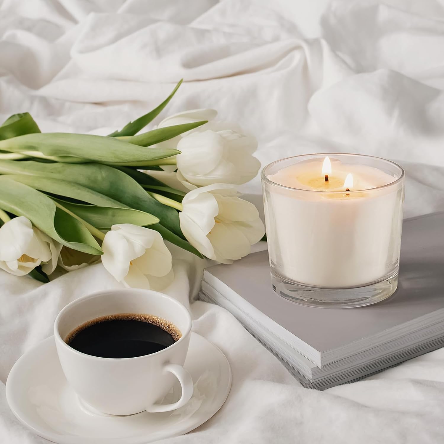 - [Glass Candle Vessel] A perfect candle container for making candles. Wood lid and glass design, stylish appearance, simple and modern, can be used as elegant home decoration, candlelight through the candle jars, create a warm family atmosphere.