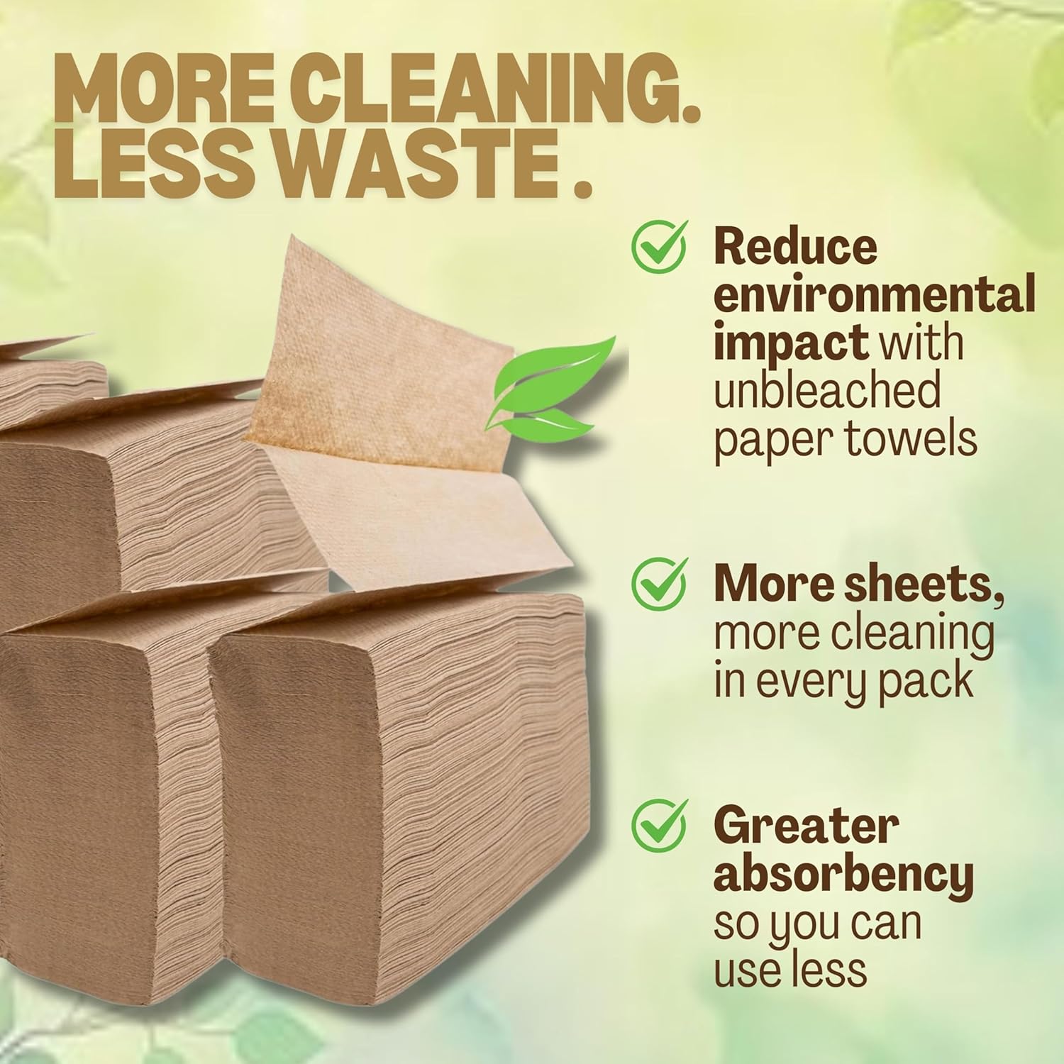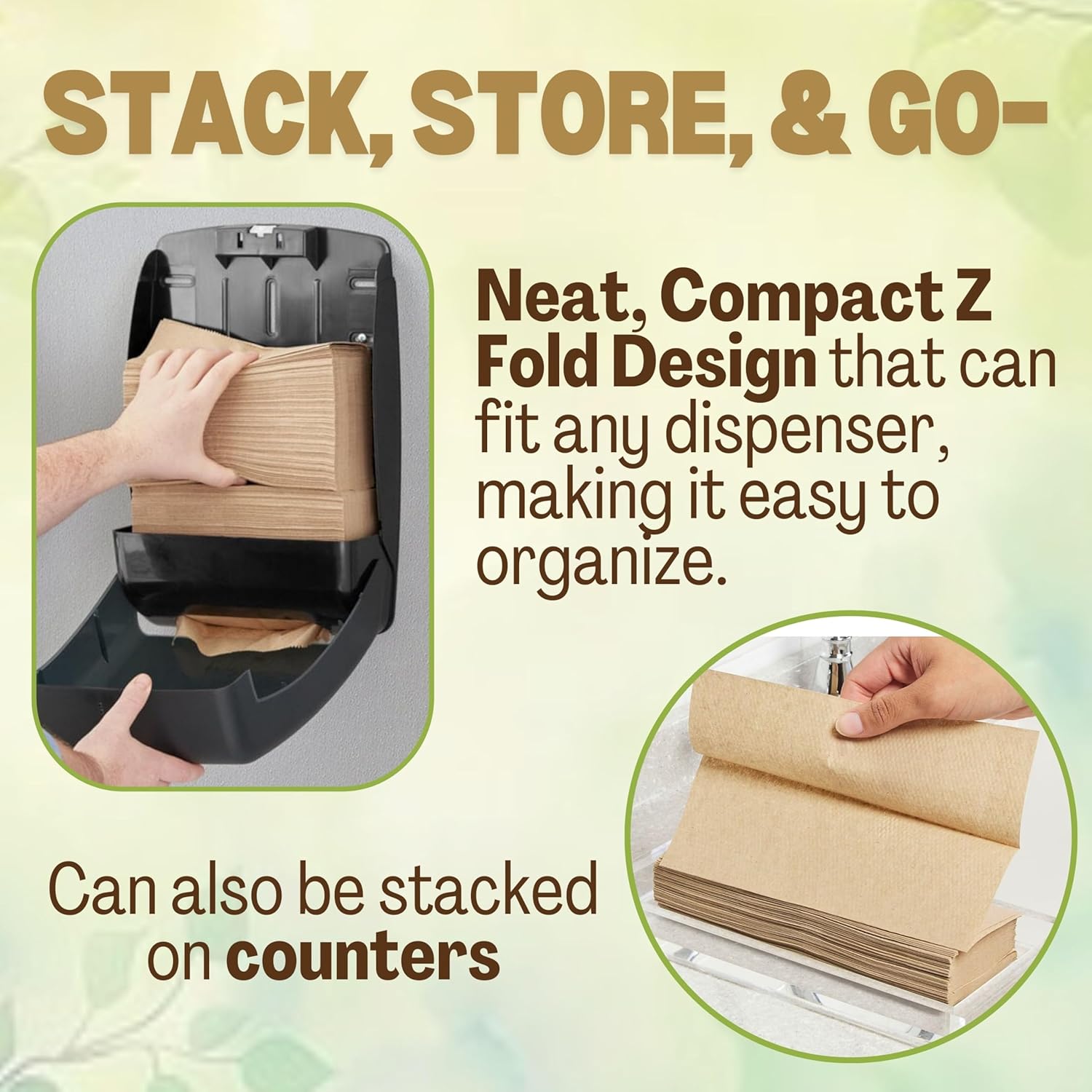 Brown Unbleached Z-Fold Paper Towels – 1000ct | Commercial Multifold Paper Towels for Dispenser | All-Natural, Bleach-Free, Tri-Fold Recycled Disposable Hand Towels for Bathroom & Kitchen Use