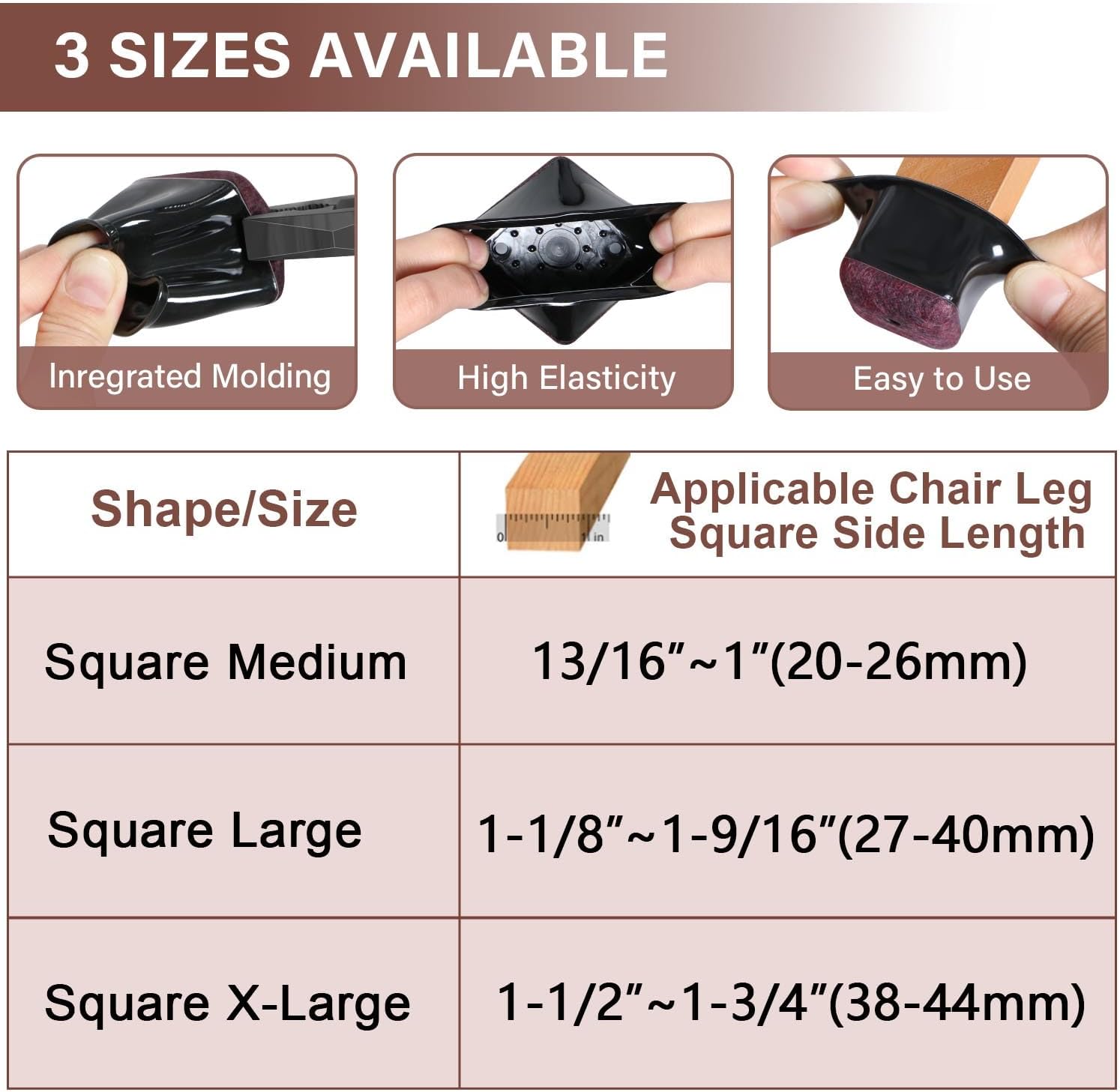 - [Stretchable fit a range of sizes]-Our chair leg floor protector is narrow at the top and wide at the bottom to adapt to various sizes. Fit square leg side length 13/16" to 1" (20-26mm).