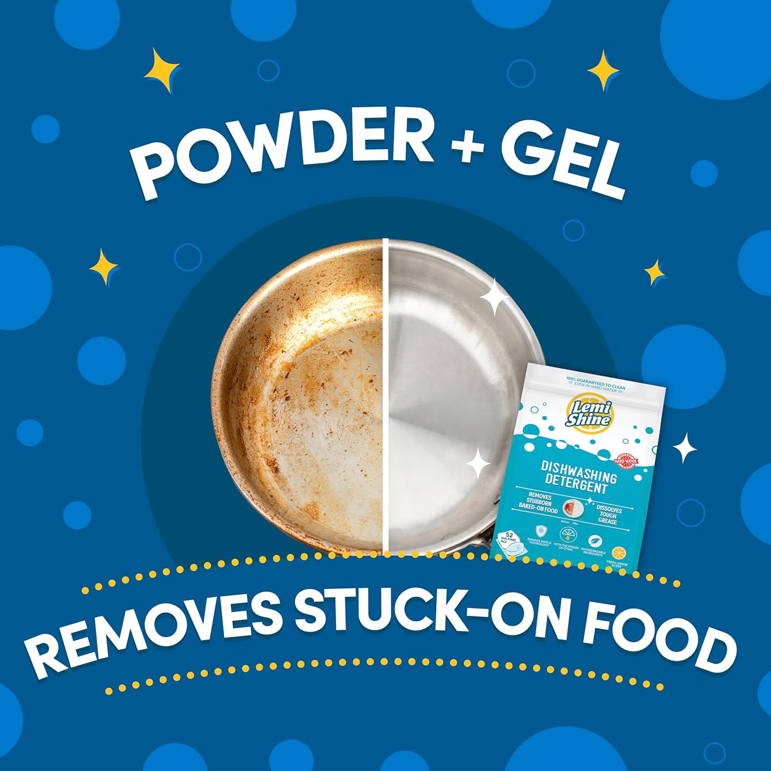 - SPARKLY CLEAN & LEMONY FRESH: Check out your reflection in those squeaky clean dishes! With dual-chamber action of powder and gel, these dish detergent pods cleanse on contact with powerful citric acid molecules while leaving a super fresh lemon scent!