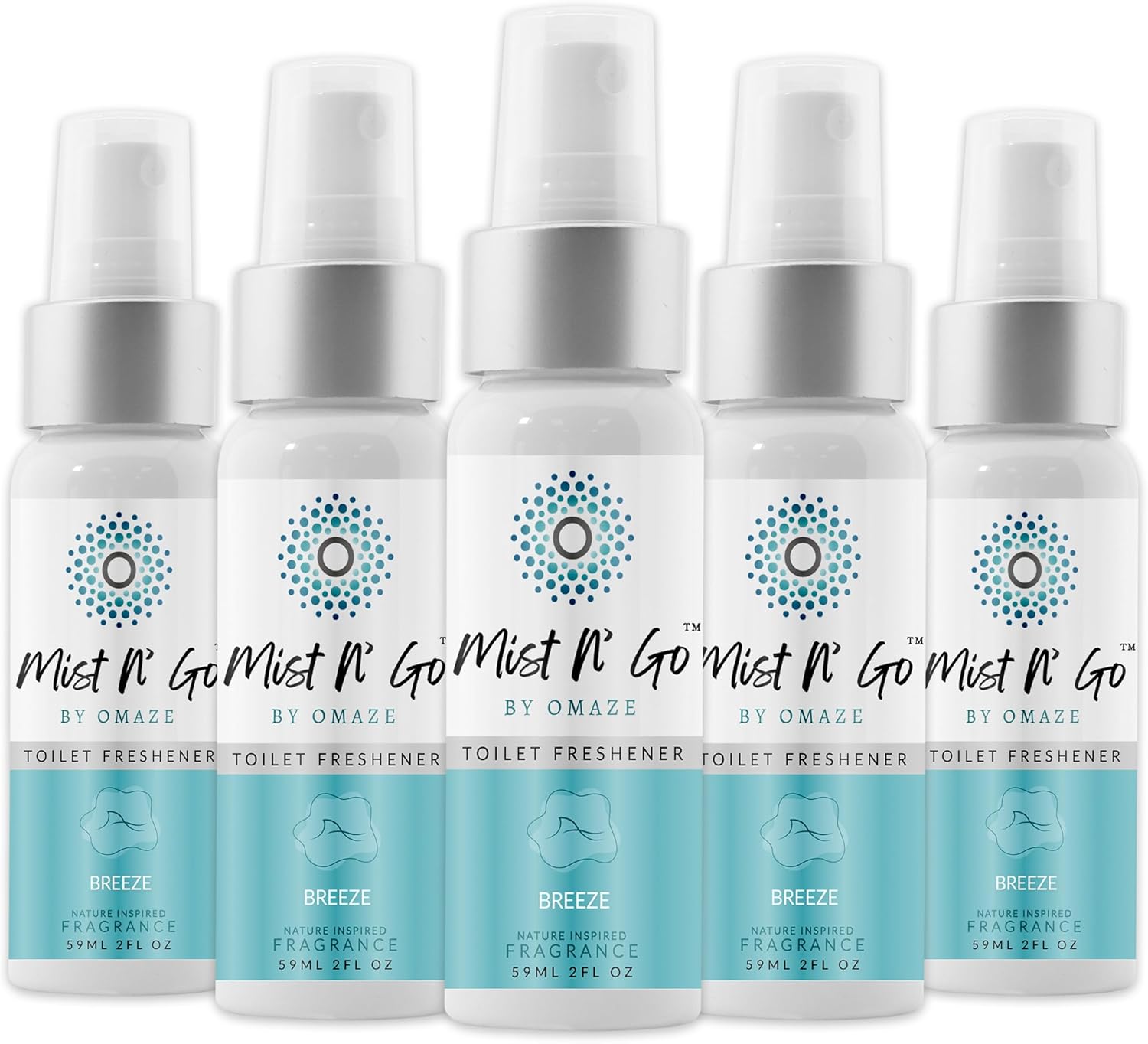 Mist N’ Go by Omaze Travel Bathroom Spray for Toilet Spray Odor Eliminator - Travel Toilet Spray for Bathroom Air Freshener Spray for Bathroom Deodorizer - Breeze Regular Size (2oz x5)