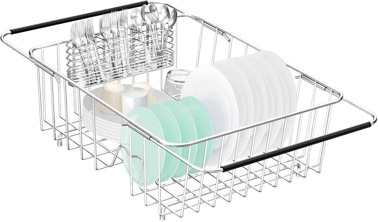 - Special Feature : 304 Stainless Steel Silverware Holder, Dishes Slot Available, Fit most sinks, Non-slip Adjustable arm, Rustproof 304 Stainless Steel Silverware Holder, Dishes Slot Available, Fit most sinks, Non-slip Adjustable arm, Rustproof