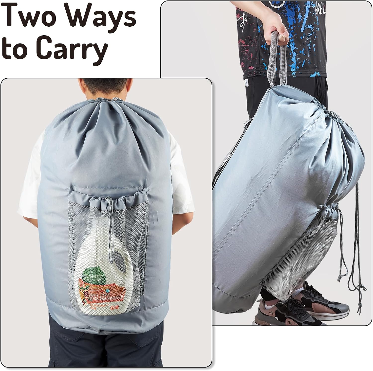 Backpack Laundry Bag, Large Laundry Backpack with Detergent Holder and Adjustable Shoulder Straps for College Travel Dorm Room (Gray)