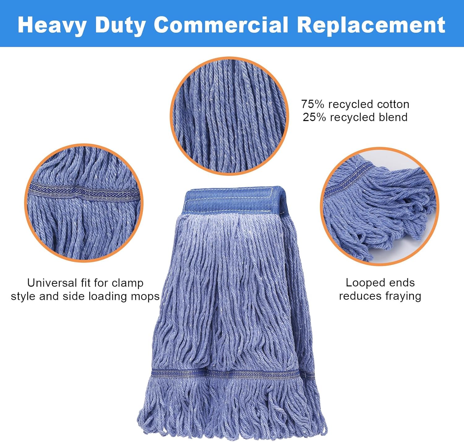 3 Pack Commercial Replace Mop Head, Reusable Mop Head Refills-Replacement Mop Heads Suitable for Heavy Commercial Industrial Residential Areas,Wet Industrial Cotton Looped End String Mop Head (Blue)
