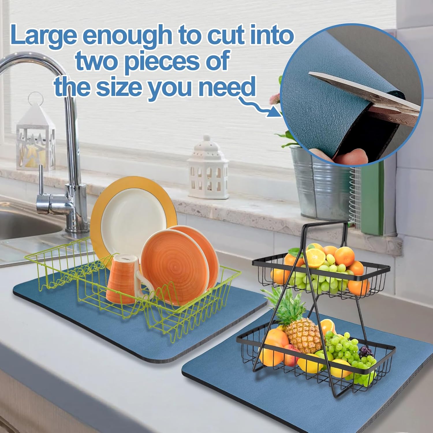Dish Drying Mat for Kitchen Counter, 17"x31.5" Dish Drying Pad with Non-slip Rubber Backed, Hide Stain Anti Absorbent for Kitchen Counter, Drying Mat for Coffee Machine Dish Rack (Blue)