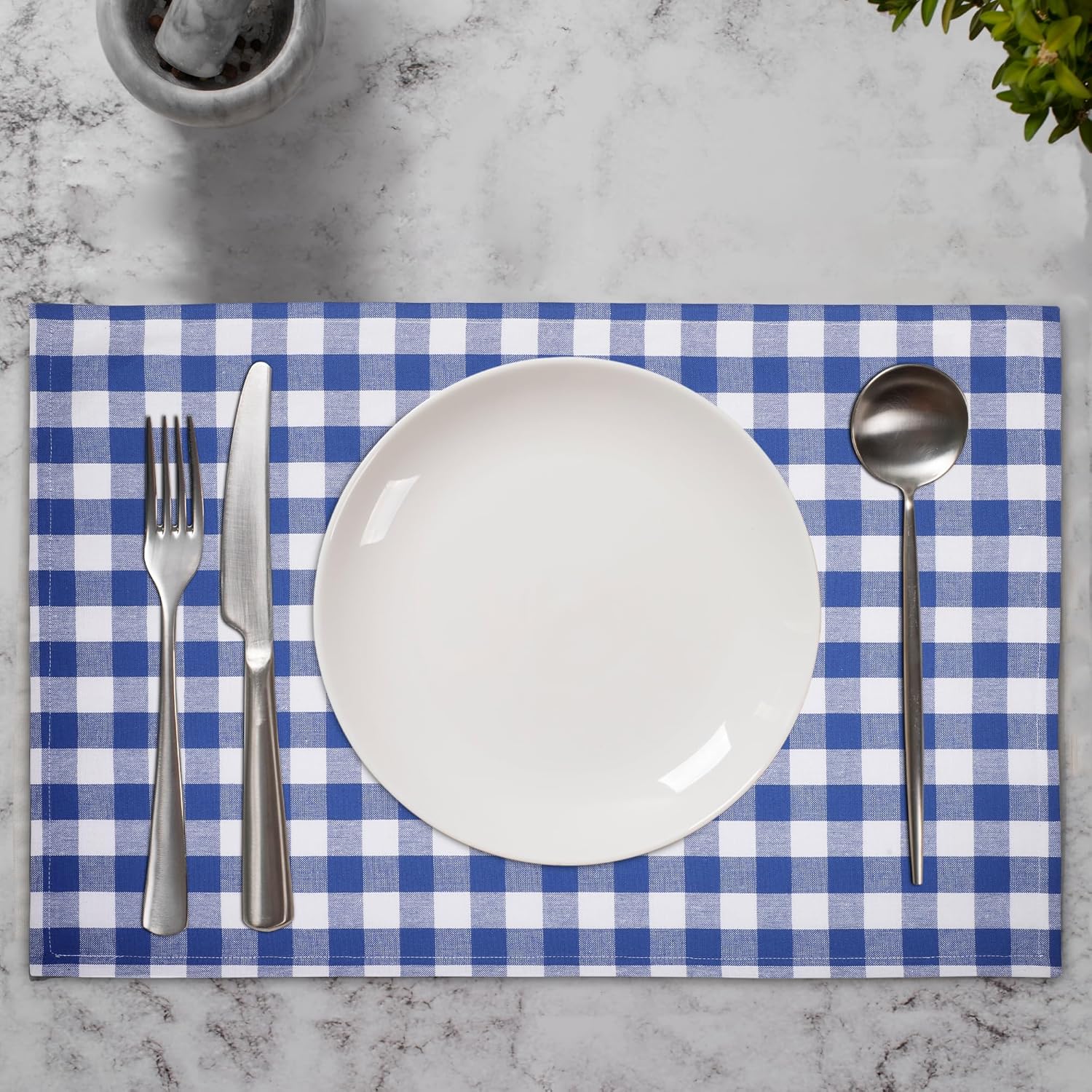 Kitchen Towels Set of 6 Soft Premium Cotton Highly Absorbent Dish Towels 18x28 Inches, Washable & Reusable Tea Towel, Quick Drying Dish Cloths with Hanging Loop - Blue/White, Checks