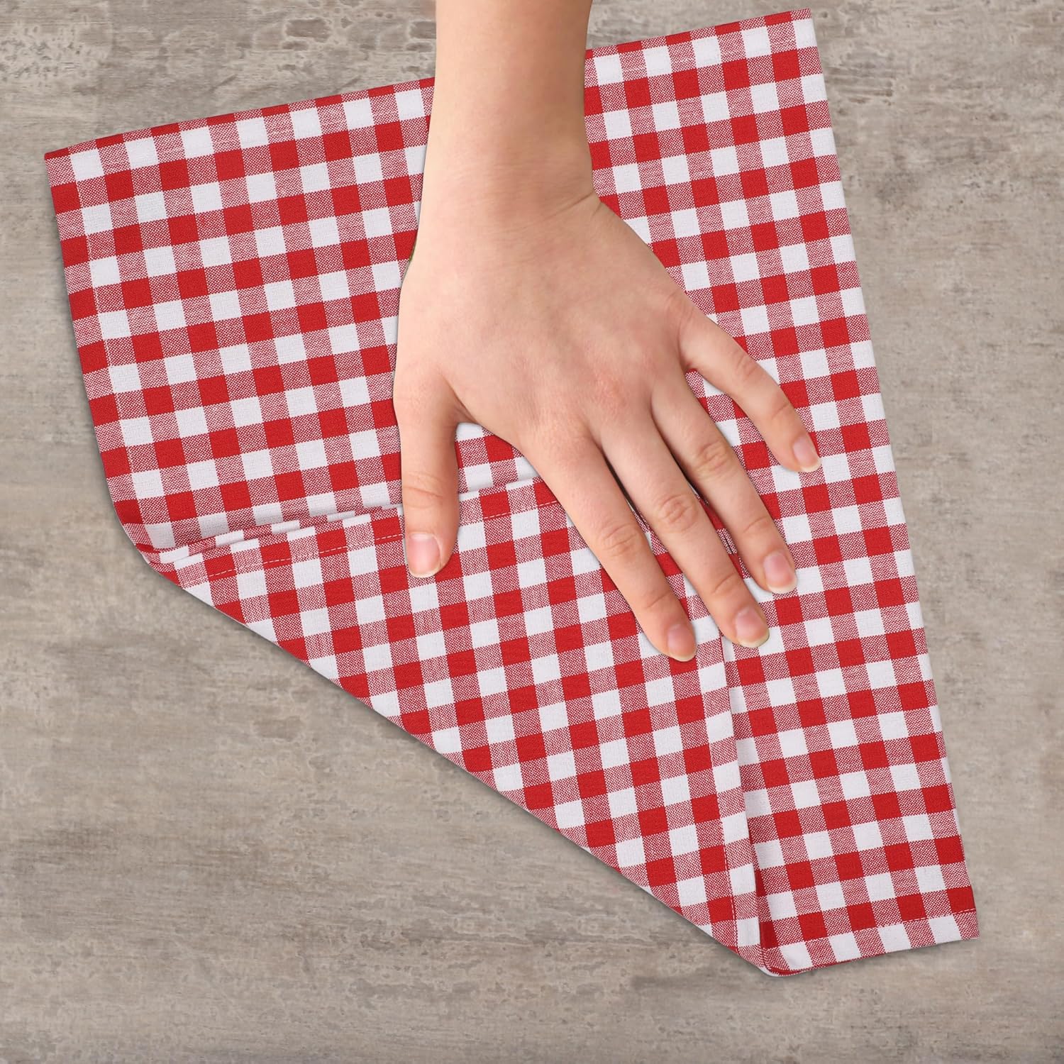 Kitchen Towels Set of 6 Soft Premium Cotton Highly Absorbent Dish Towels 18x28 Inches, Washable & Reusable Tea Towel, Quick Drying Dish Cloths with Hanging Loop - Red/White, Checks