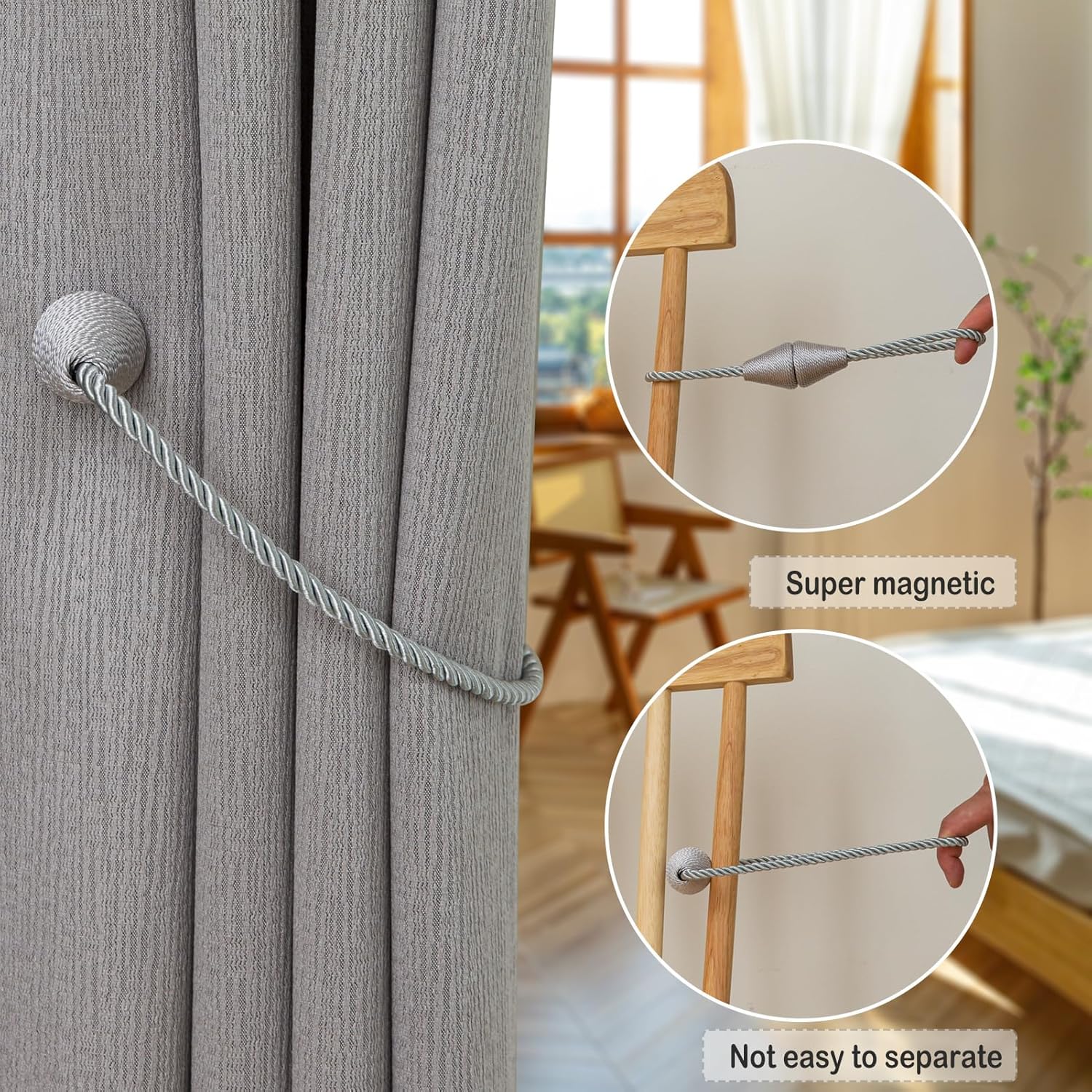 Magnetic Curtain Tiebacks 2 Pack Outdoor Rope Curtain Tie Backs Decorative Window Treatment Holdbacks for Home Decorative Curtain, Grey