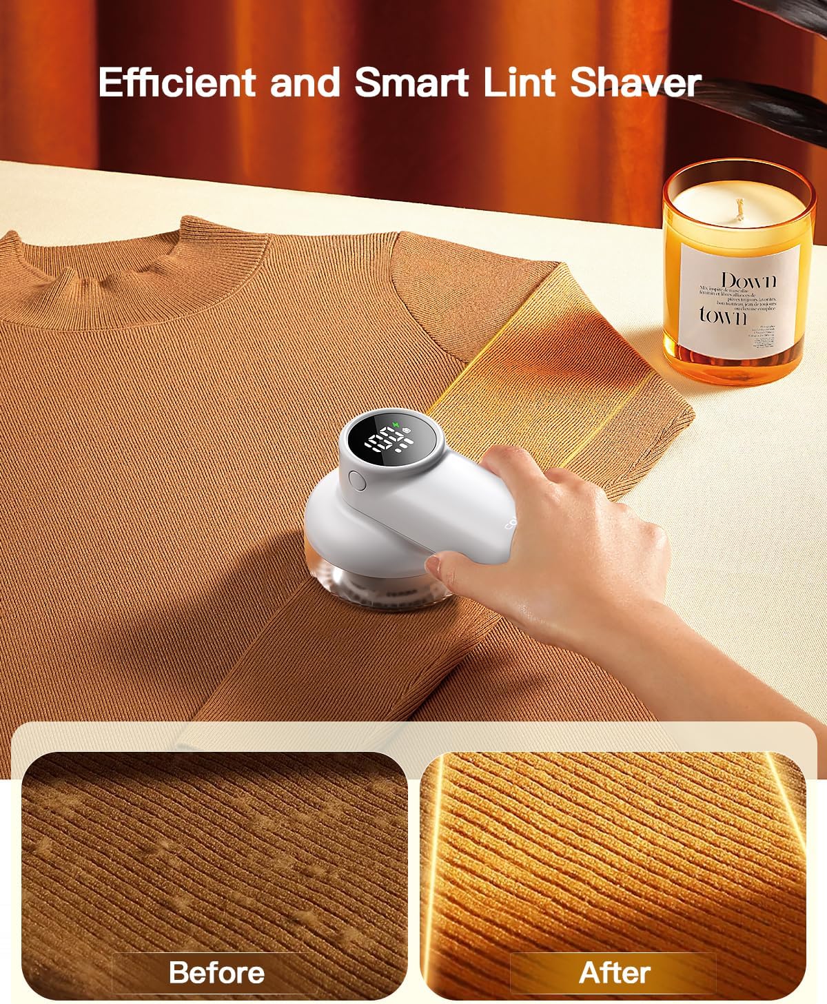 - 𝗥𝗲𝗰𝗵𝗮𝗿𝗴𝗲𝗮𝗯𝗹𝗲 & 𝗟𝗘𝗗 𝗗𝗶𝗴𝗶𝘁𝗮𝗹 𝗗𝗶𝘀𝗽𝗹𝗮𝘆: The high-definition screen of the lint remover will display the remaining battery power, speed levels, and charging status. Lint remover features a built-in rechargeable battery that can be quickly charged in just 1 hour, eliminating the need for frequent battery replacements and saving you money on battery purchases