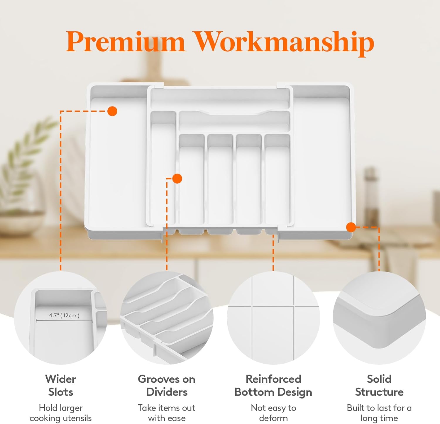 - Robust and Safe: This kitchen drawer organizer is crafted from premium PP material, BPA-free and built to last. It ensures your silverware is stored in a healthy, safe environment for worry-free use