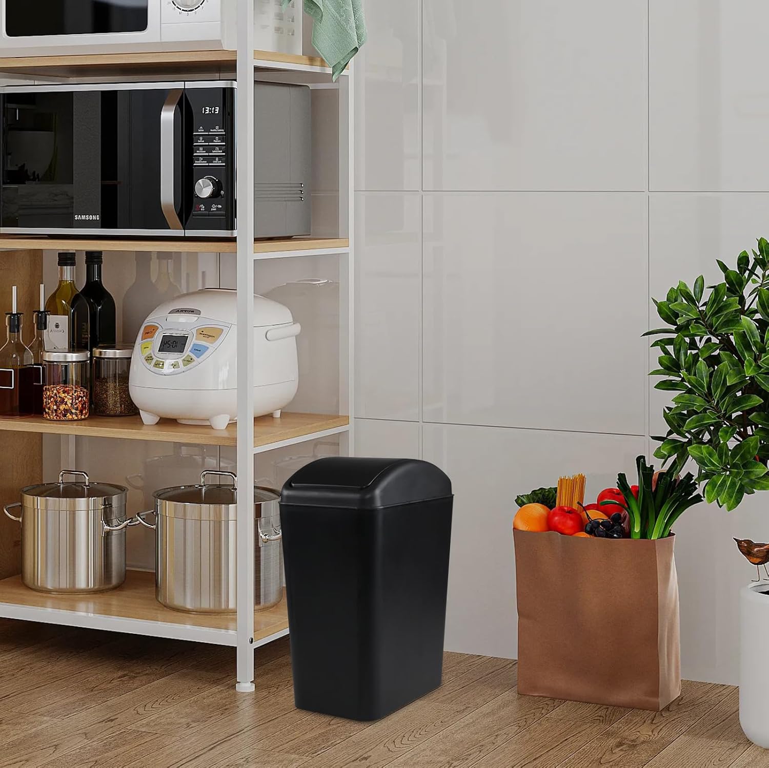 3-Pack 4.5 Gallon Plastic Trash Can with Swing Lid, Swing-Top Waste Can, Black