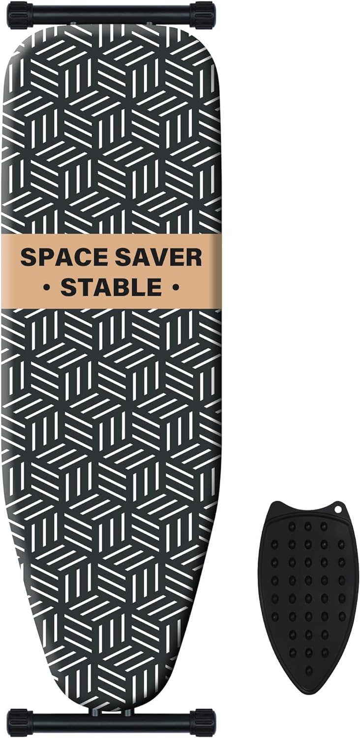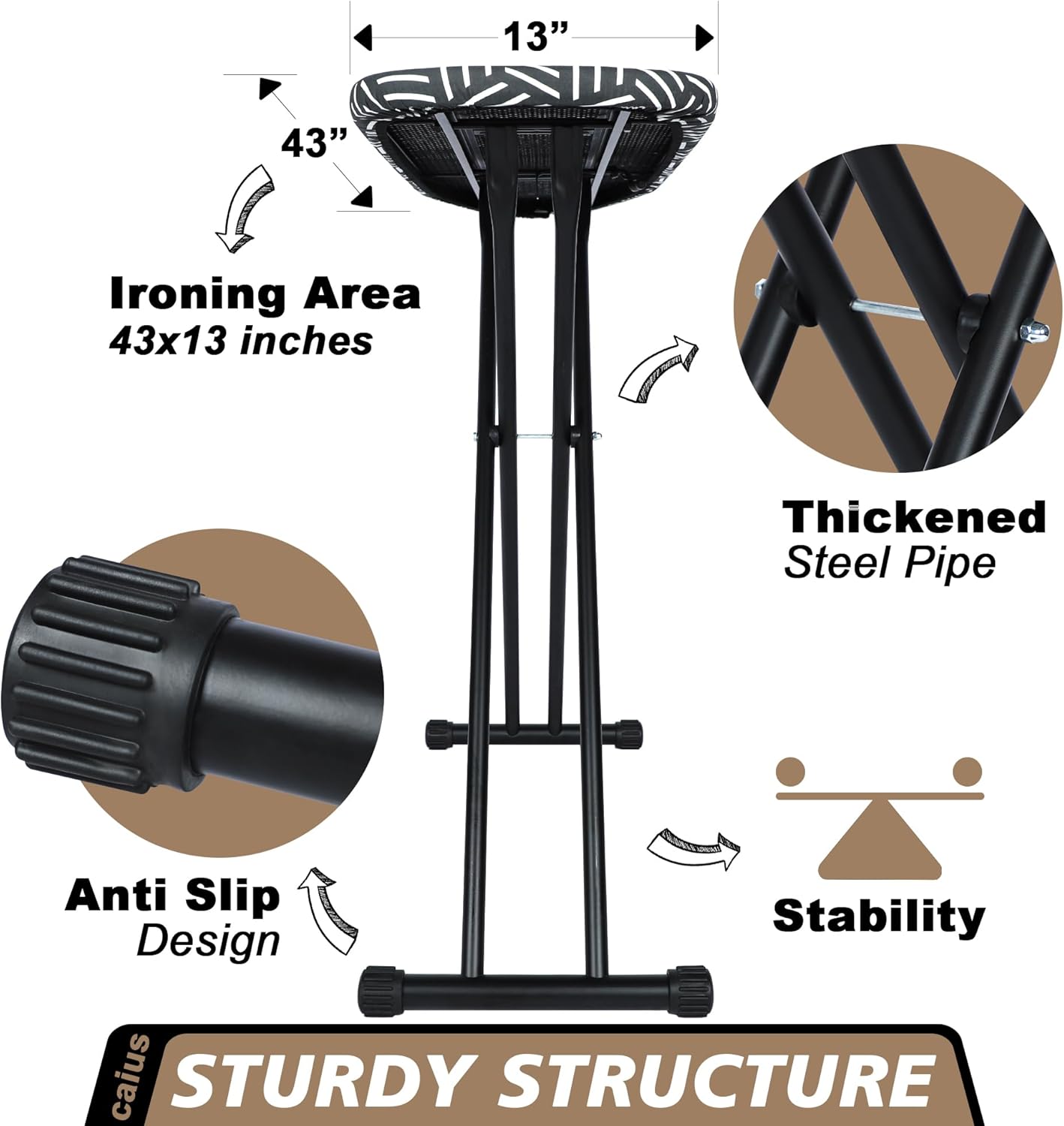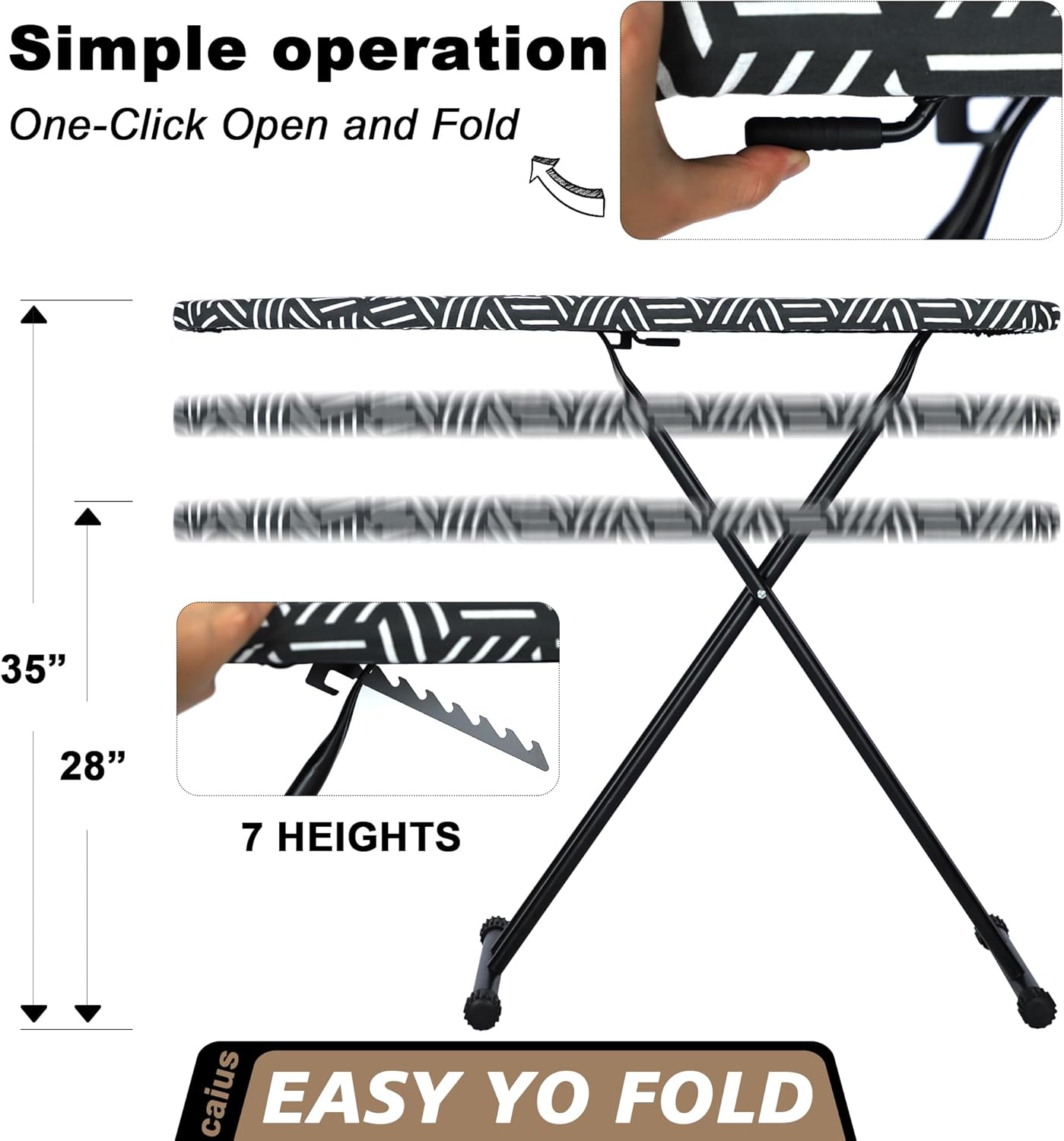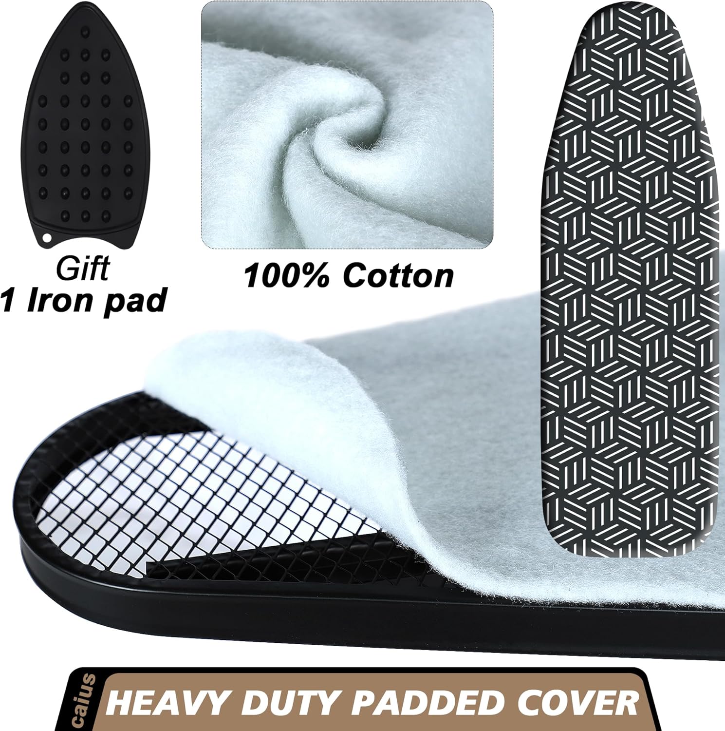 caius Ironing Board, Compact and Space Saver Full Size Ironing Board, Extra Wide Ironing Area with Extra Thick Heavy Duty Padded Cover, Stable Structure, Easy to Fold