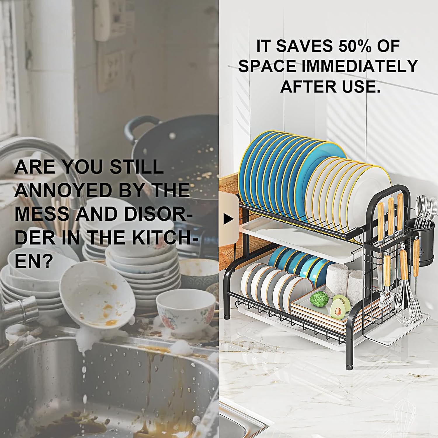 - Are you still troubled by the mess and disorder in the kitchen? This dish drying rack saves 50% of space immediately after use.