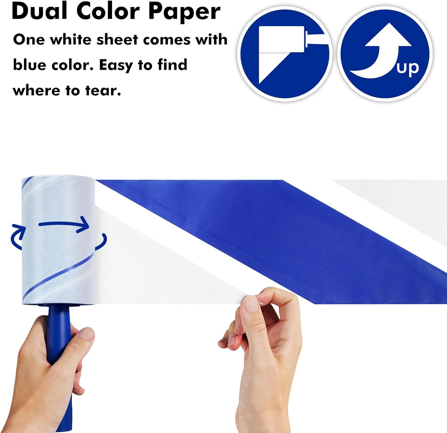 - Easy To Tear: The lint roller papers take new upgraded design, the paper sheet has two color which one layer is white and another is blue. You can easily find where to peel off.