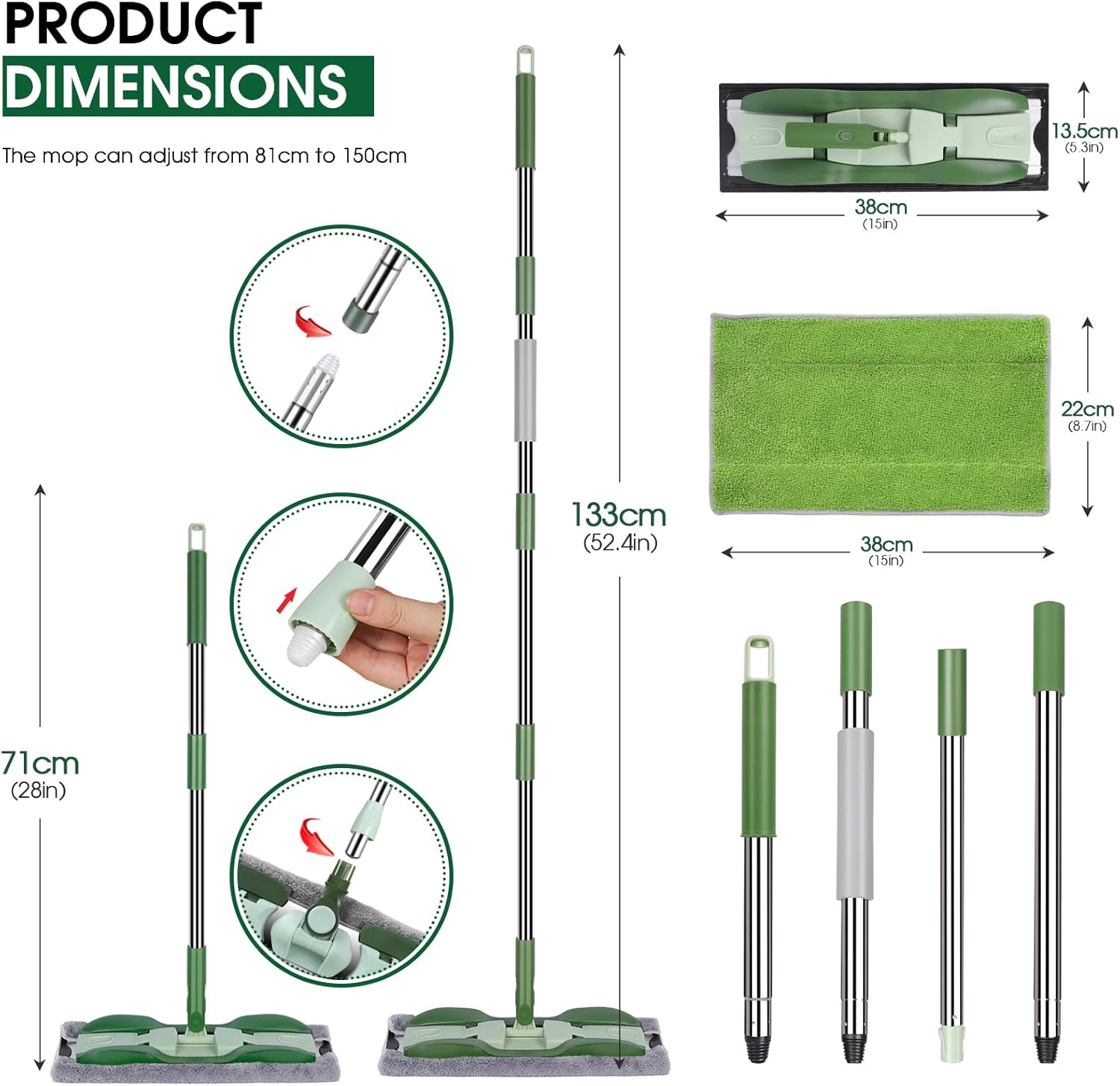 - 【Rotating Mop Head】The hardwood floor mop head features a flexible swivel joint, allowing it to rotate 360 degrees for easy maneuverability in every corner. Effortlessly clean all hard-to-reach areas of your house with our dry mop for hardwood floors.