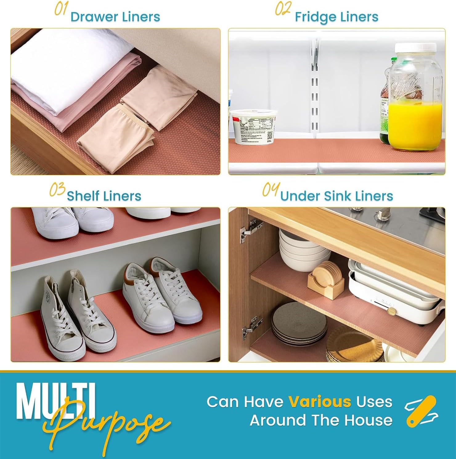 - MULTIPLE FUNCTIONS - Works as fridge shelf liners, drawer liners and cabinet drawer liners - the uses are endless. Our fridge liner is a must have refrigerator accessories for any rv, home and kitchen. Simply cut to size using scissors to fit the liner mats anywhere in your house