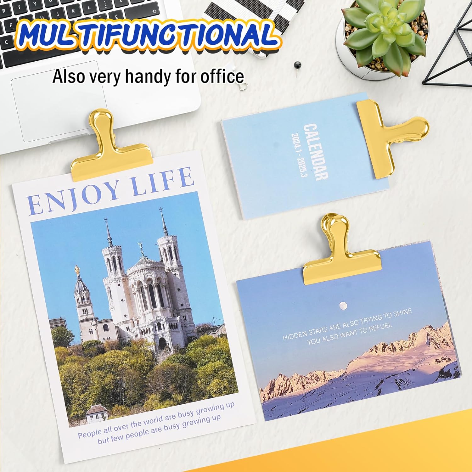 VNDUEEY 12 Pack Chip Clips, Stainless Steel Bag Clips for Food - Keep Snacks Fresh, Strong Grip Chip Clip Bag Clip, Perfect for Kitchen and Office Supplies -3 Inches, Gold