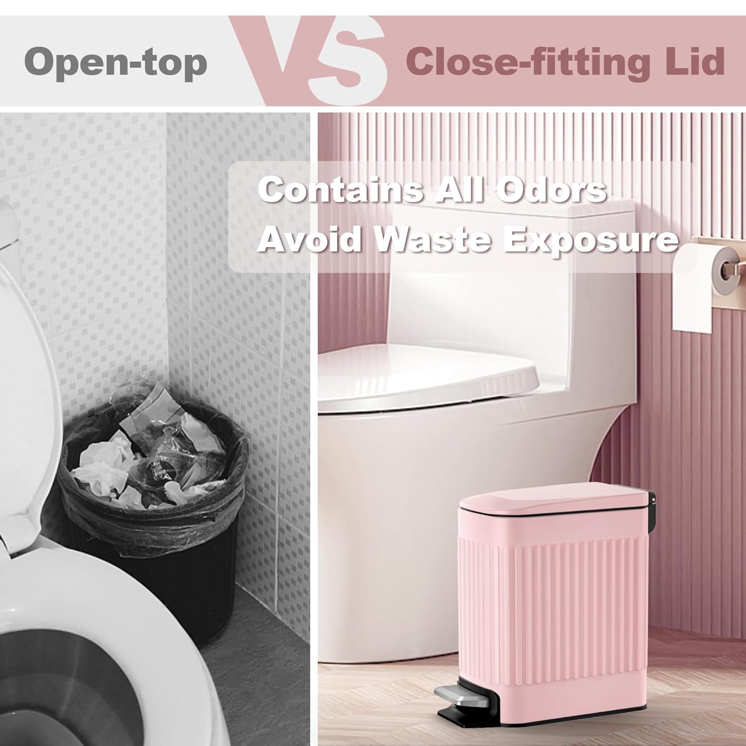 - Excellent Sealing - Contains all odors, can never smell them with the lid closed. And the trash can with lid makes your dogs can’t get into it.