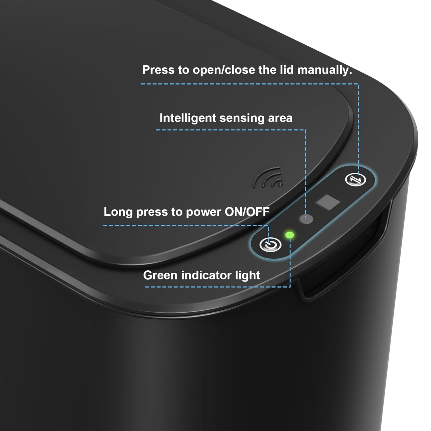 - Touchless Trash Can: Utilizing advanced infrared technology, its lid opens when your hand or any object is detected in the sensing area, eliminating the need for direct contact. Particularly beneficial for individuals with mobility challenges, the automatic functionality surpasses foot pedal options. Requires 2 AA batteries (not included)
