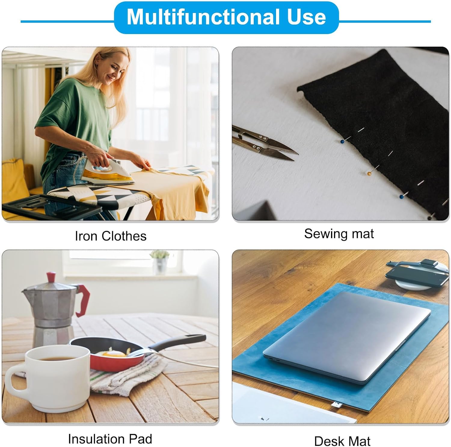 - Instruction Widely Used. In addition to being an ironing mat, the wool pressing mat for quilting can also be used as a sewing mat, also can be placed on the computer table, and can also be placed on the dining table as a heat insulation mat to protect the dining table.