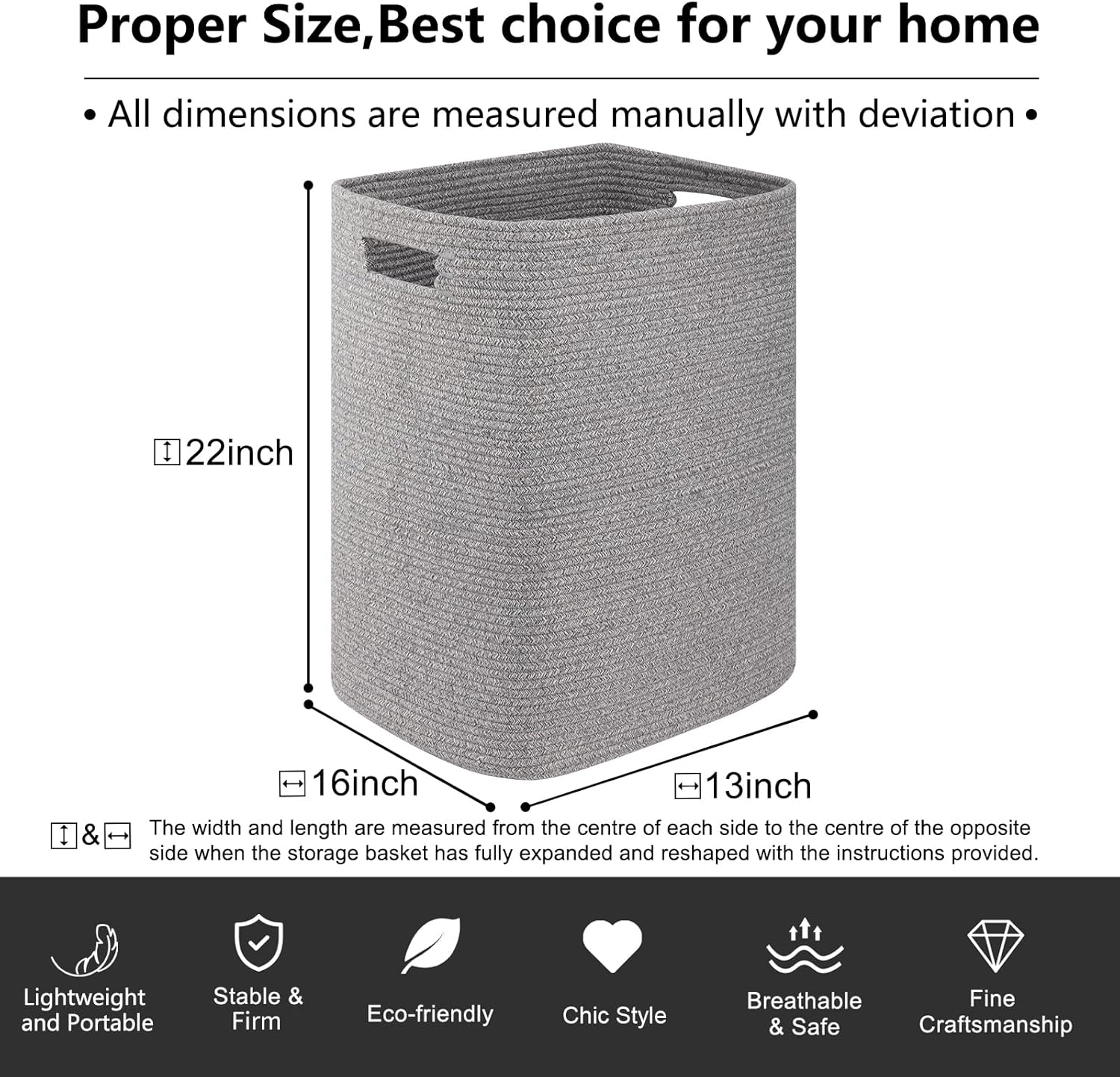 - Large Blanket Basket:The overall size of the storage basket is 16x13x22 inches.This large basket can easily accommodate a family's change of clothes and keep room clean & tidy.This elegant woven storage basket bring great convenience in life to store bulky items like blankets,toys,comforters,duvets,throw pillows,cushions,stuffed animals,winter clothing etc