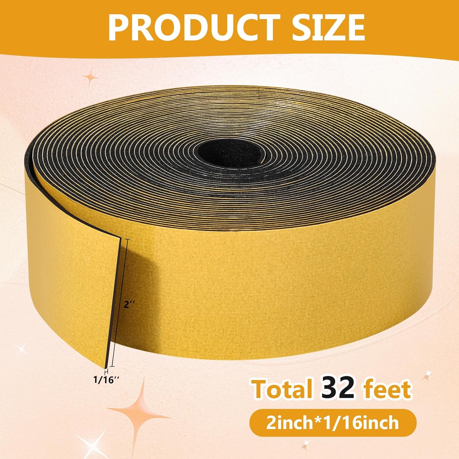 32Feet Weather Stripping Seal (2 Inch X 1/16 Inch) for Door Window, High Density Foam Tape, Soundproofing, Insulation Strip, Door Sealers for Door Frame- Black