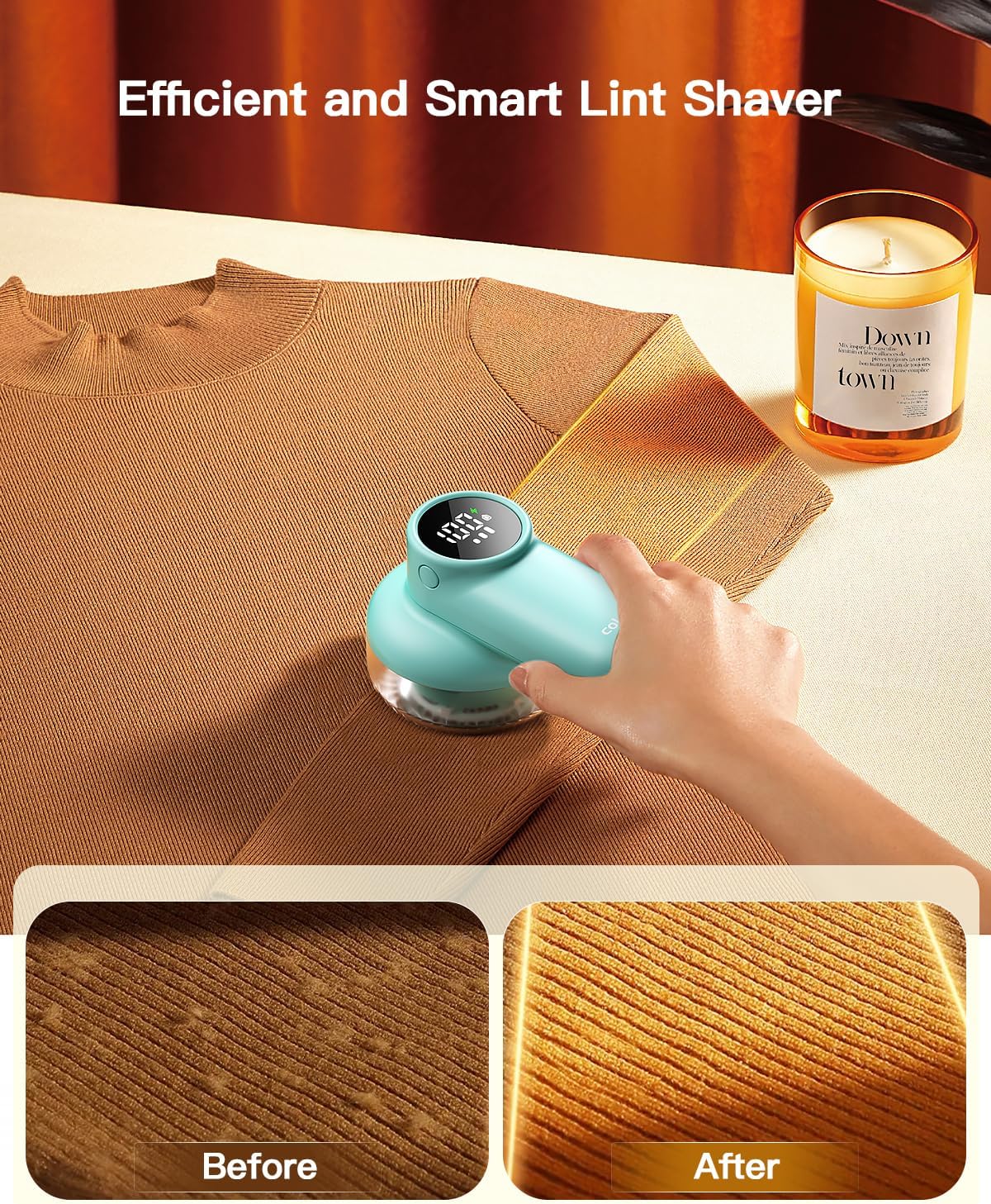 coldSky Rechargeable Fabric Shaver, Lint Shaver with Digital Display, Sweater Shaver with 6-Leaf Blades and Safety Lock, 3-Speeds Defuzzer Remove Fuzz, Pills from Clothes, Furniture, Blanket Green
